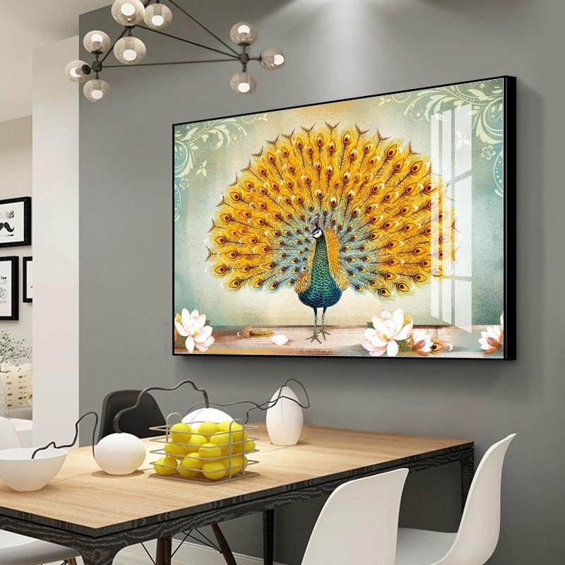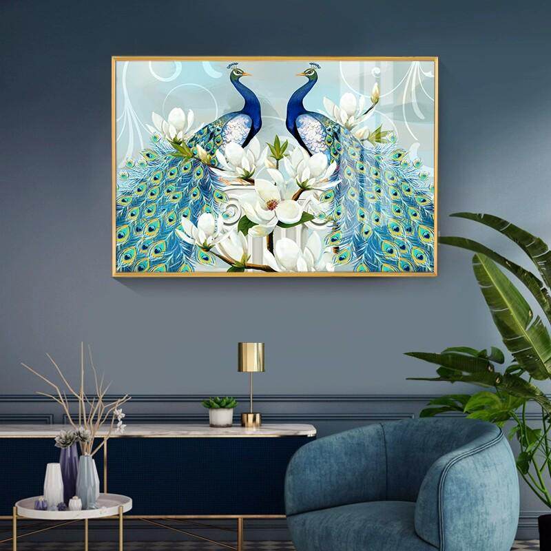 简欧客厅装饰画卧室沙发背景墙挂画饭厅玄关过道餐厅古典孔雀开屏