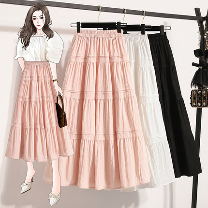 大码春夏新款高腰百搭休闲半身裙女胖MM遮胯显瘦中长款A字蛋糕裙