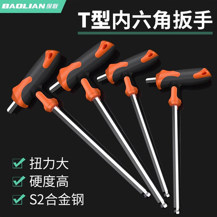 保联T型内六角扳手单个球头平头改锥套装螺丝刀内六方六棱角扳手