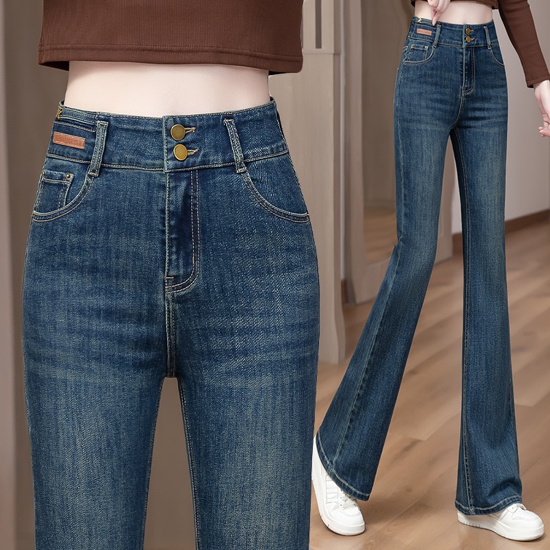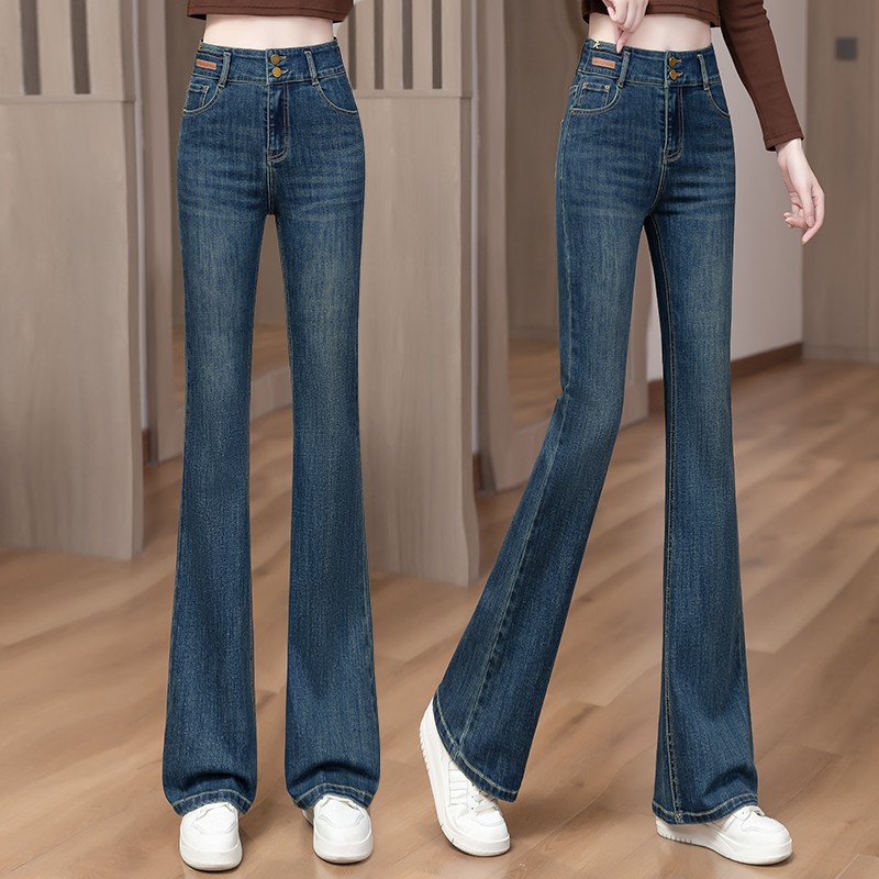 2024秋季时尚百搭新款马蹄小个子修身高腰直筒阔腿微喇裤牛仔裤女