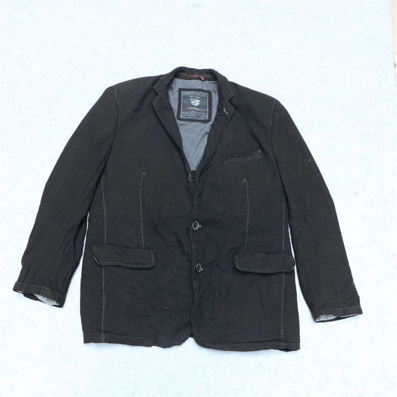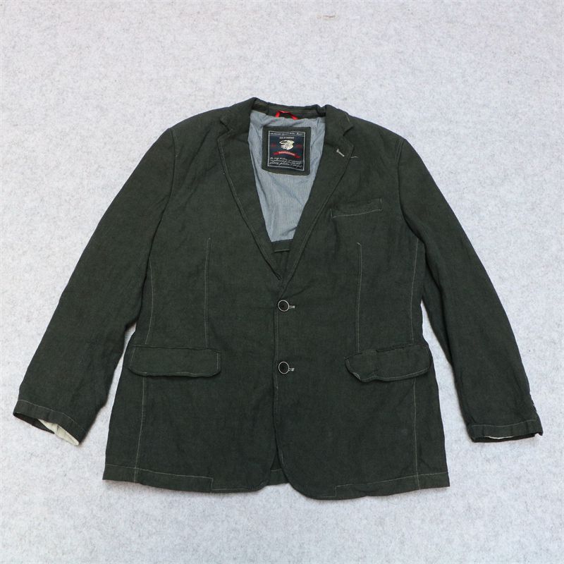 外贸美式休闲复古亚麻混纺男士西服重工水洗做旧宽松西装外套潮流