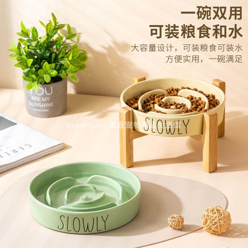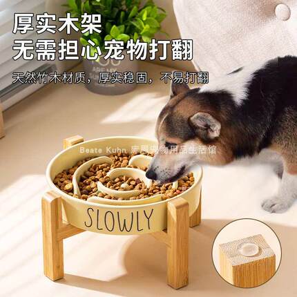 陶瓷慢食碗狗碗防噎中大型犬狗狗食盆猫碗带木架防打翻宠物用品