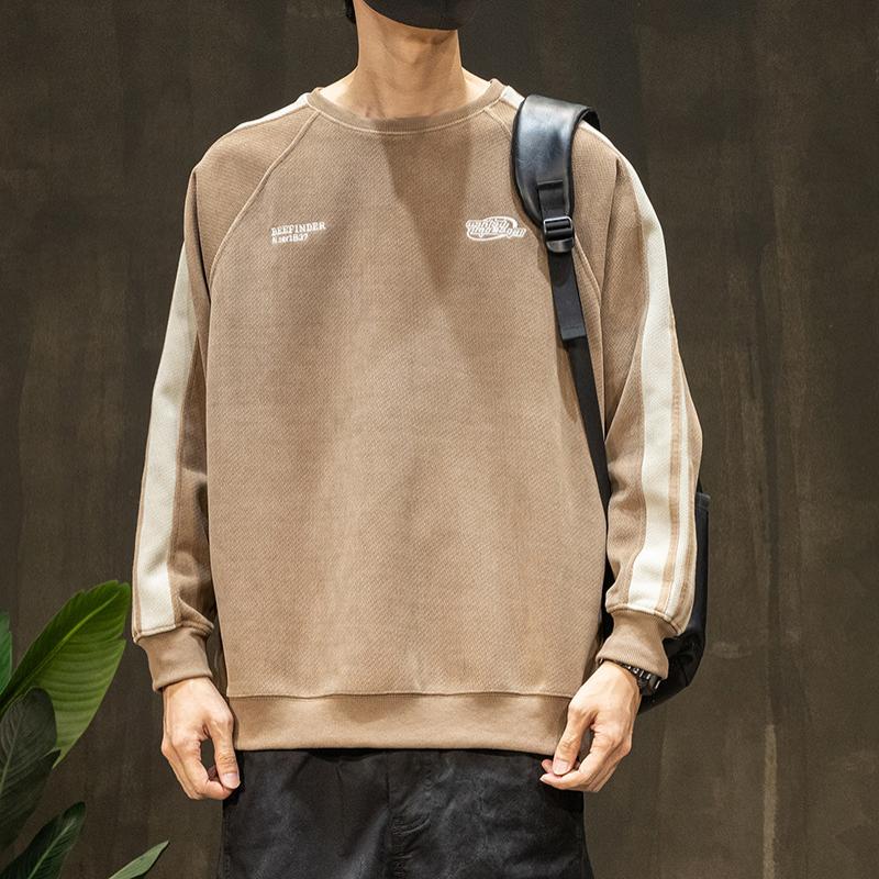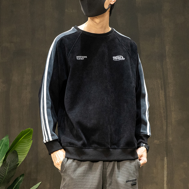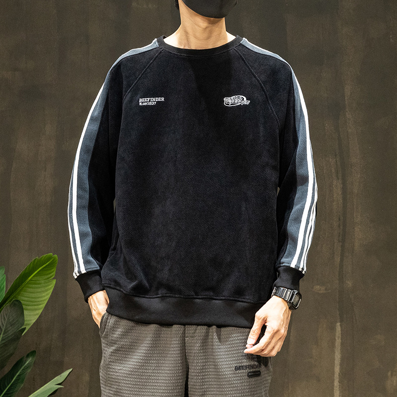 加绒重磅潮牌卫衣男春秋款圆领男款衣服秋季2024新款长袖大码条纹