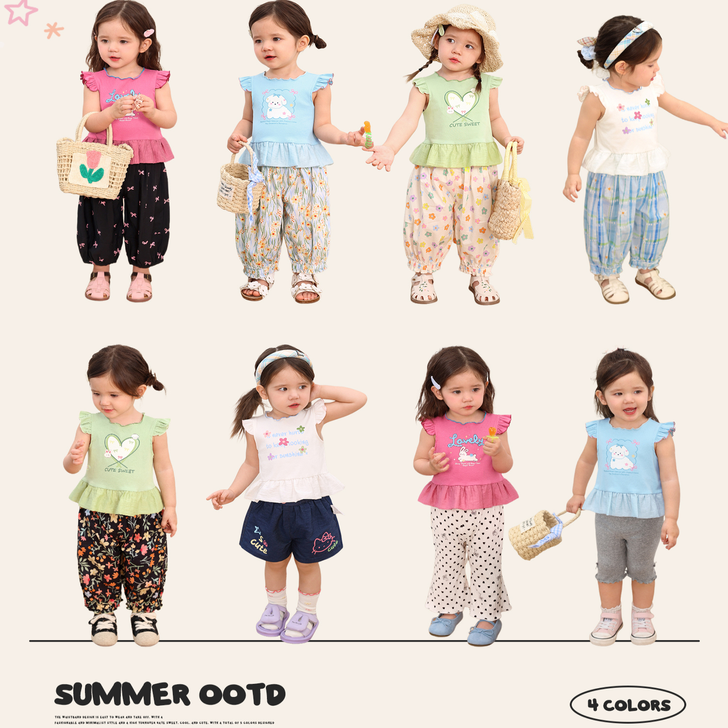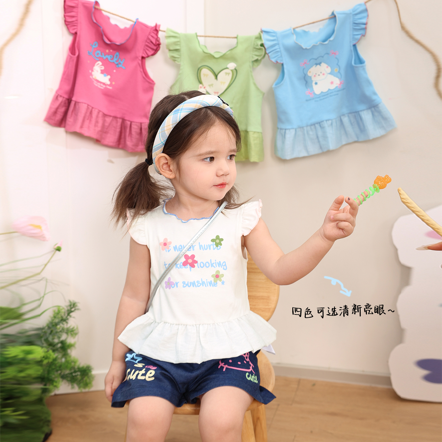 小o爸女婴童 宝宝背心吊带女2025夏季新款婴儿小飞袖洋气花边上衣