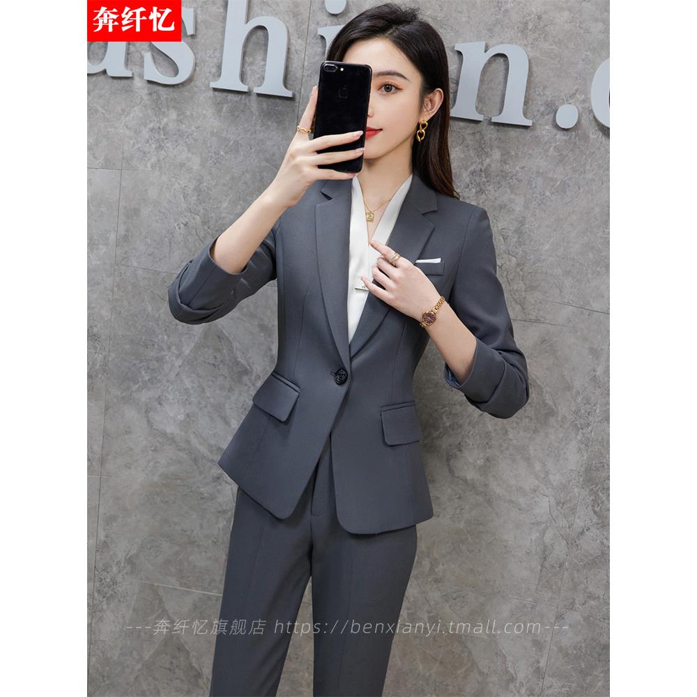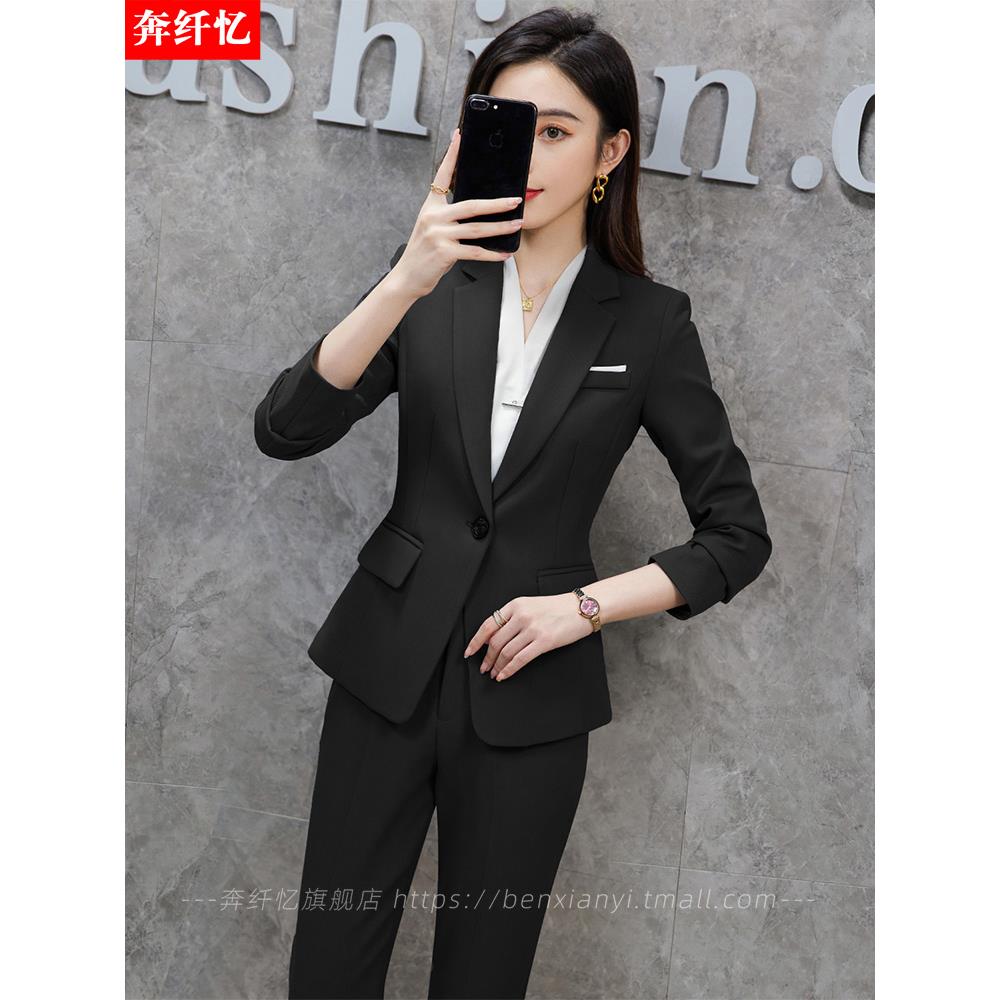 黑色西装套装女正装春秋2023新款职业气质经理工作服西服外套工装