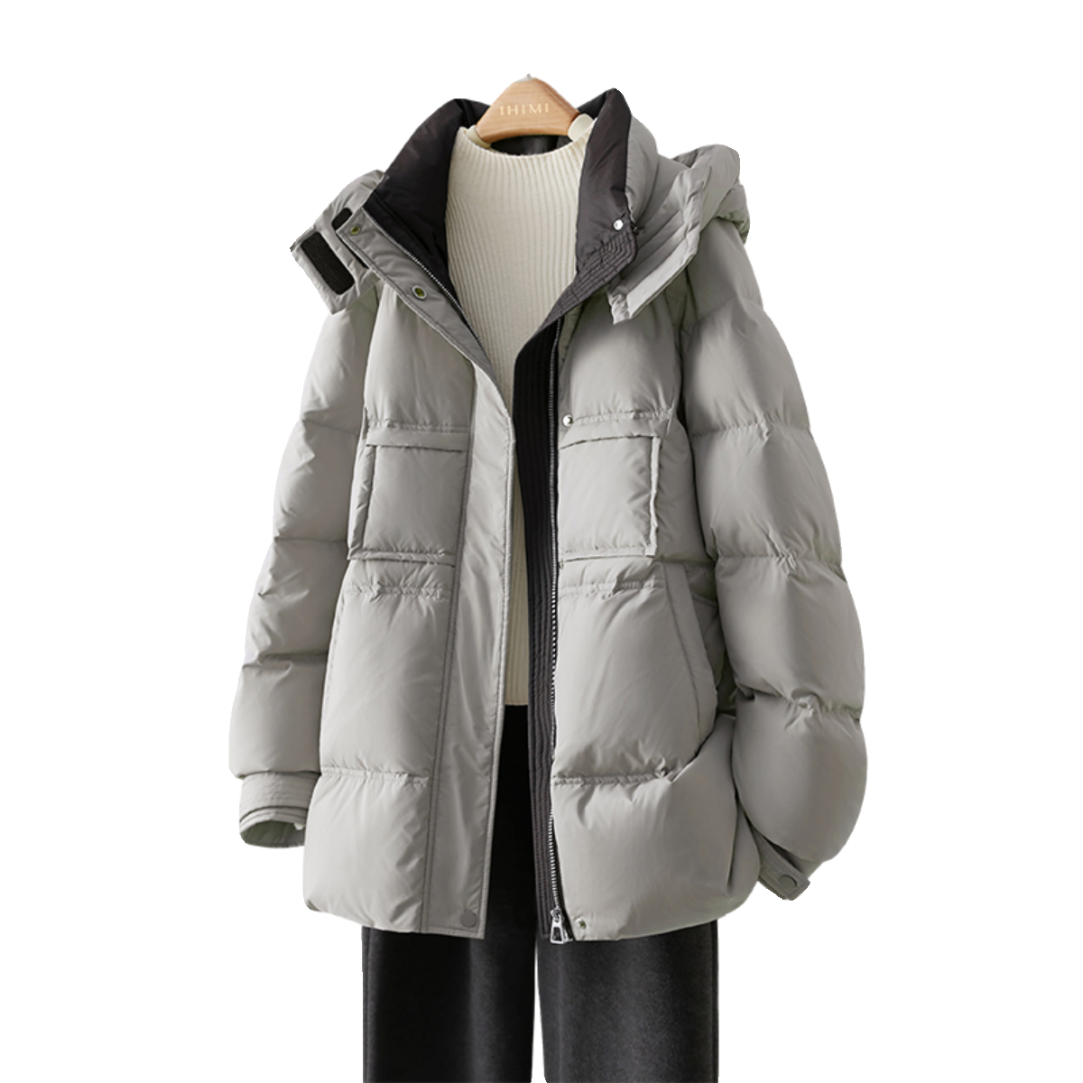 IHIMI海谧2025冬季新款女小个子拼接羽绒服女中长款保暖外套宽松