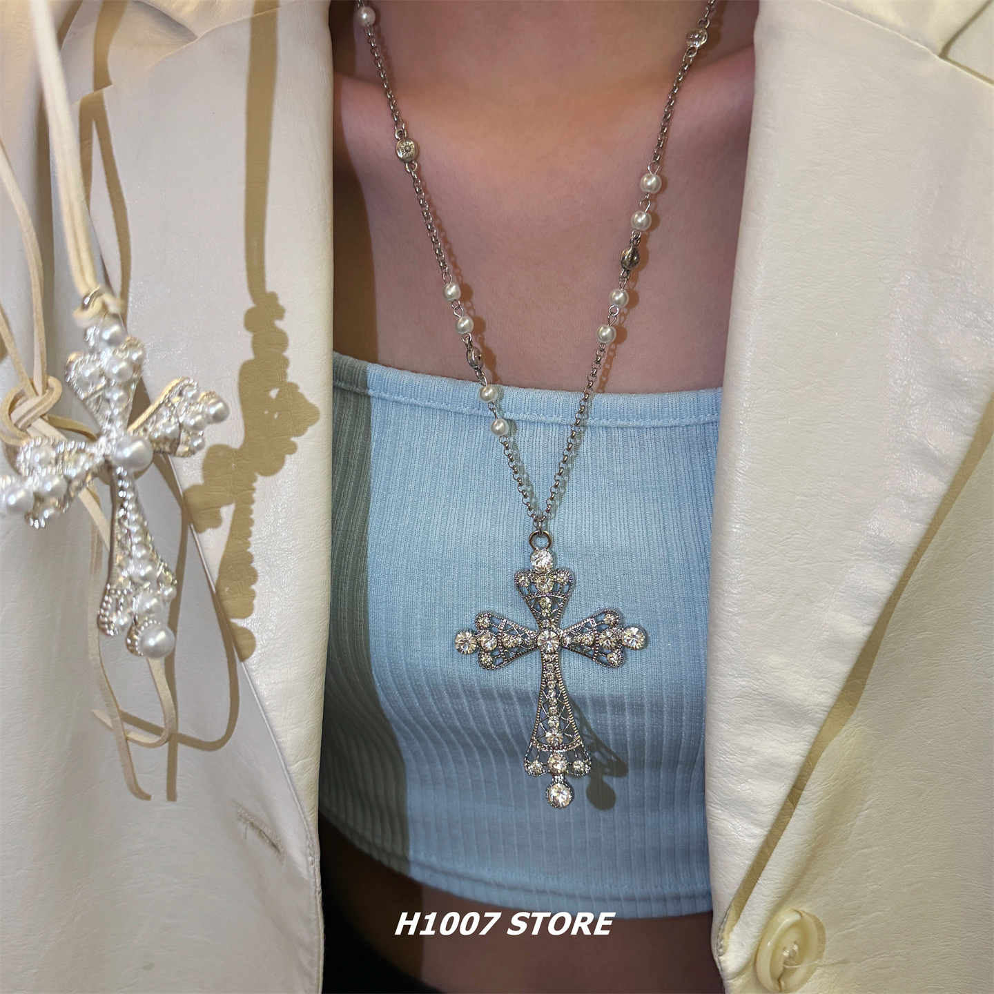 新款赛博朋克风十字架长款女项链男暗黑夸张小众设计嘻哈风毛衣链