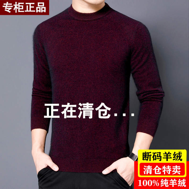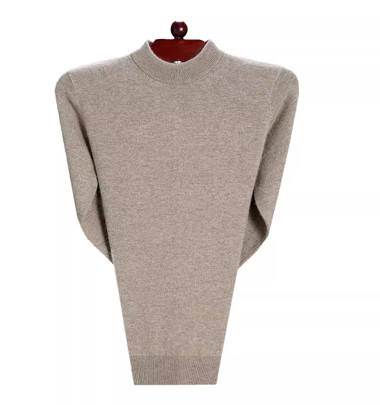 鄂尔多斯市纯羊毛衫男士针织衫半高领加厚中老年套头圆领保暖毛衣