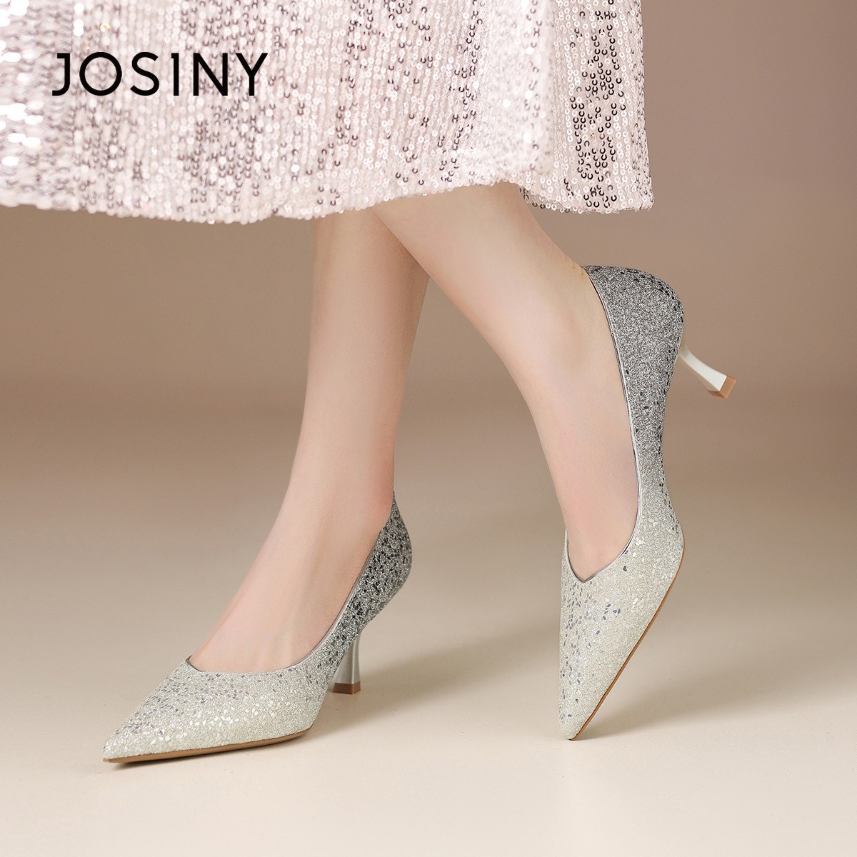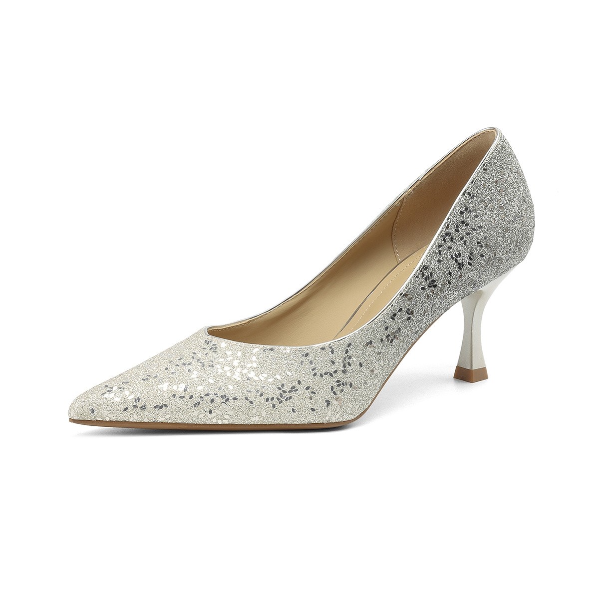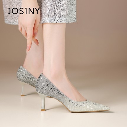 卓诗尼尖头细跟高跟鞋女鞋2024新款夏天配裙子绝美单鞋银色伴娘鞋