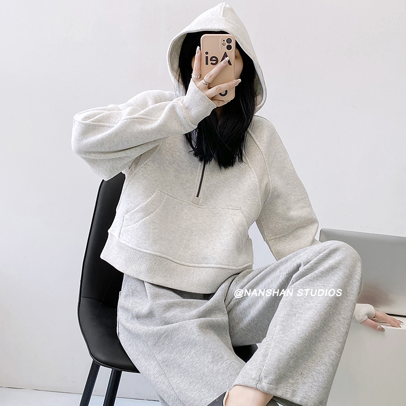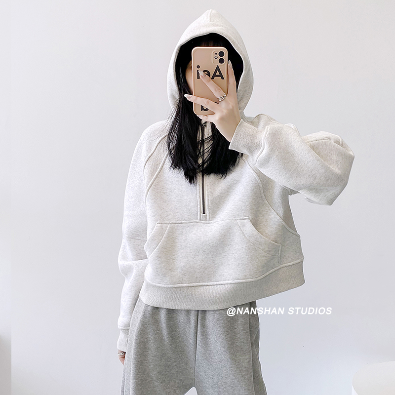 NANSHAN Llu卫衣外套修身连帽女士运动卫衣短款scub*春秋薄款上衣