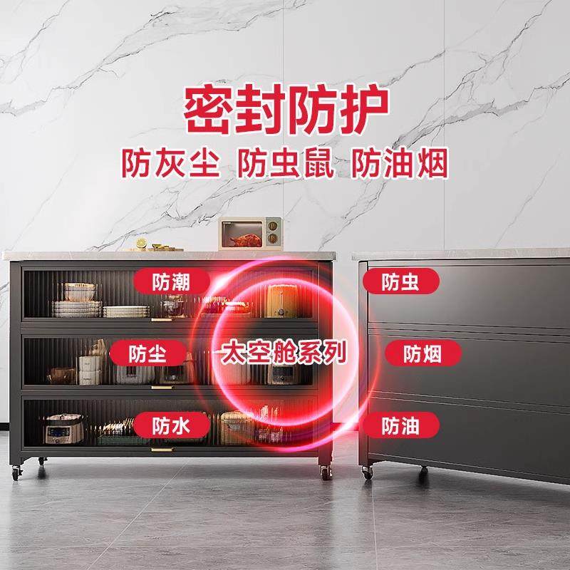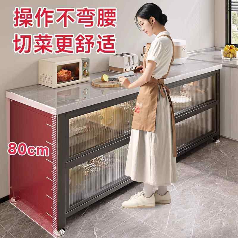 厨房置物架一体靠墙岩板多功能切菜操作台落地收纳柜橱柜工作台面