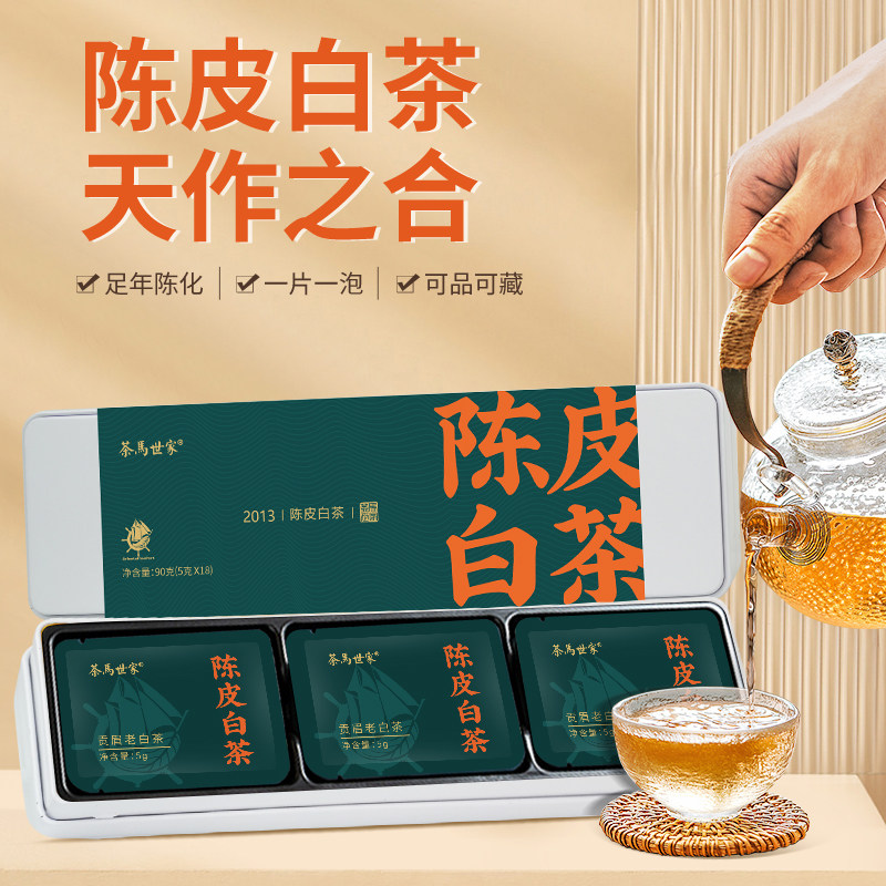 茶马世家陈皮白茶官方旗舰店正品福鼎贡眉小方片正宗老白茶礼盒装