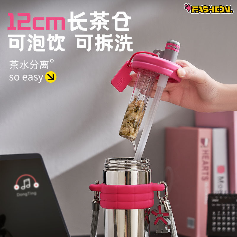 爱仕达吸管保温杯女生高颜值2025新款茶水分离泡茶水杯不锈钢杯子