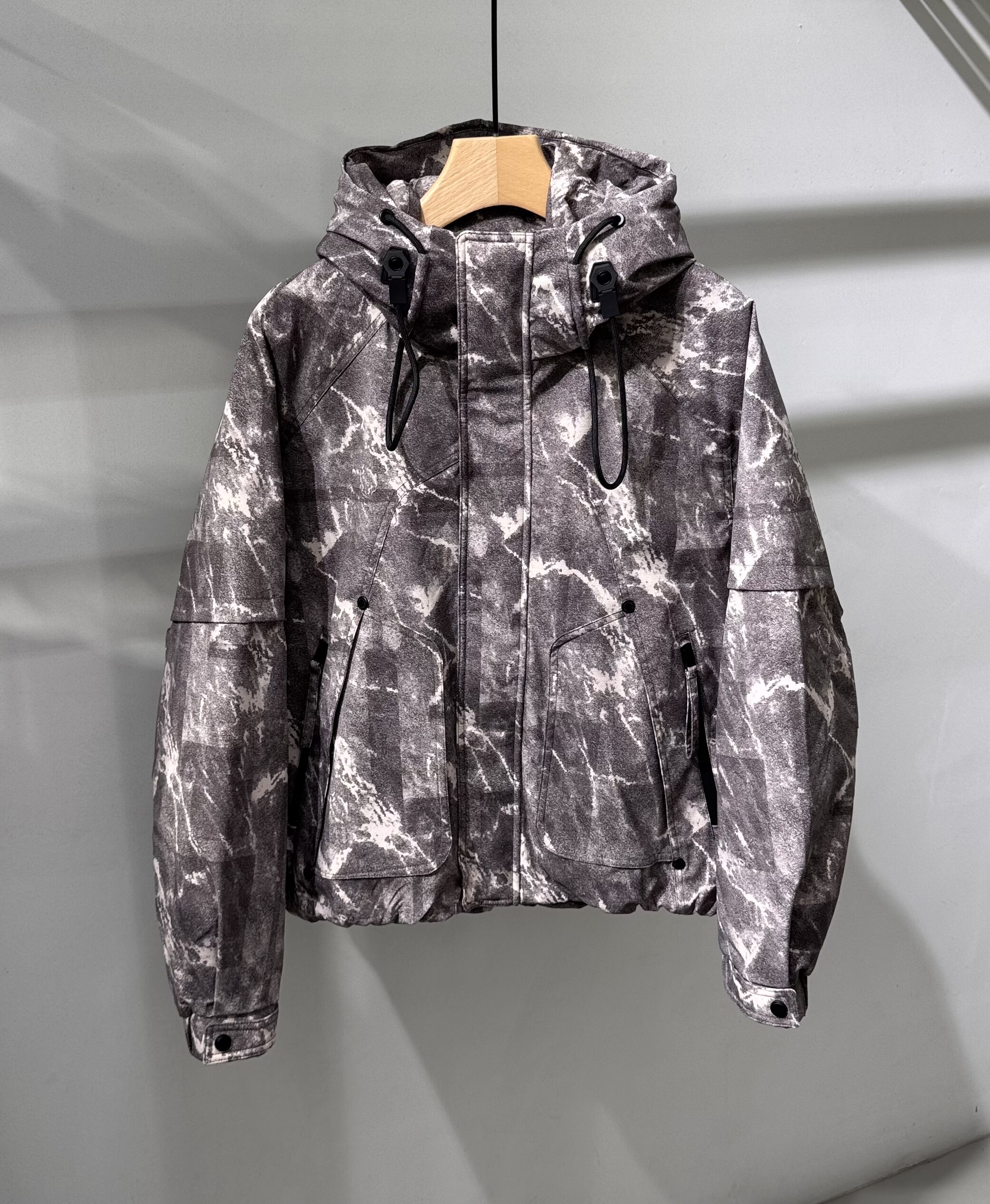 冬季新款男士连帽羽绒服潮流百搭宽松印花加厚保暖扎染羽绒冲锋衣