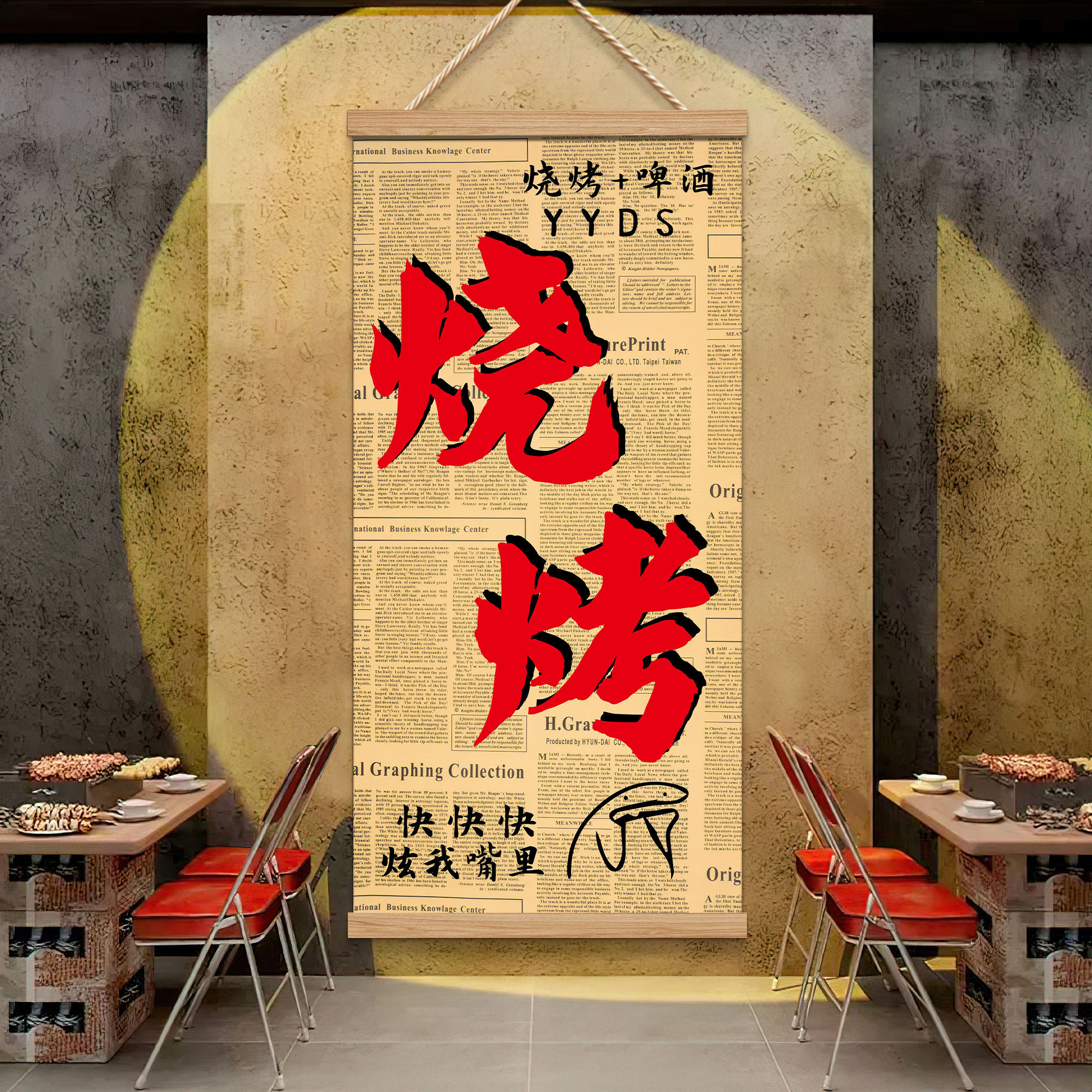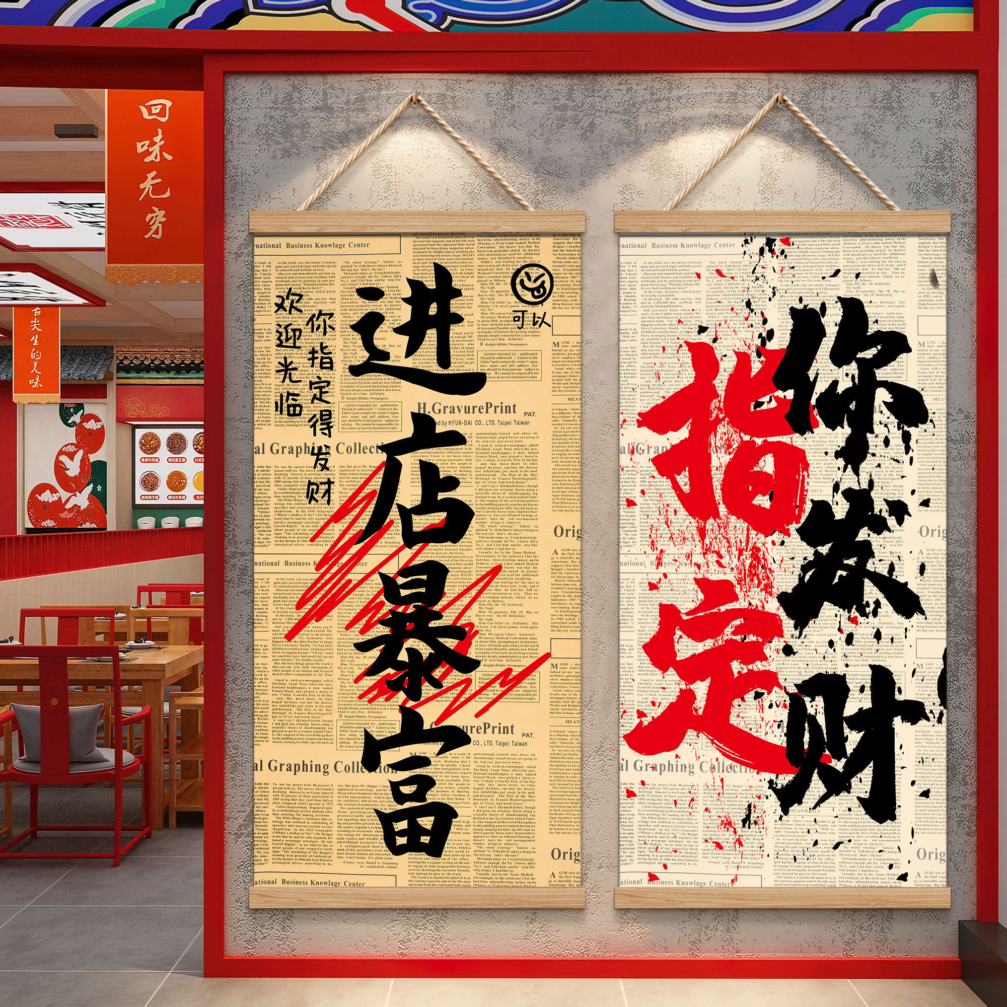 火锅店墙面装饰网红市井风格烧烤餐饮壁画复古创意进店暴富挂画QT
