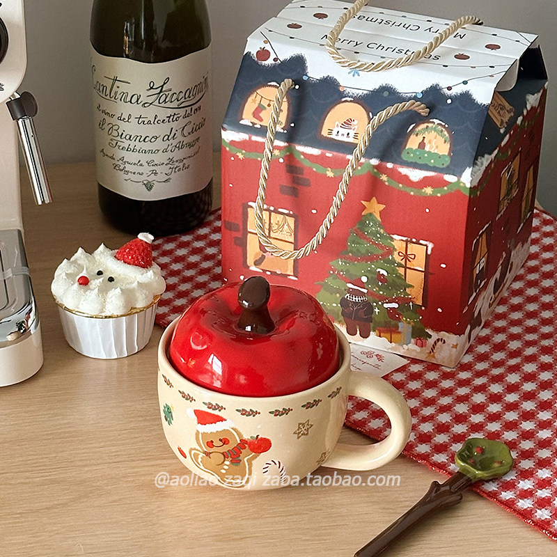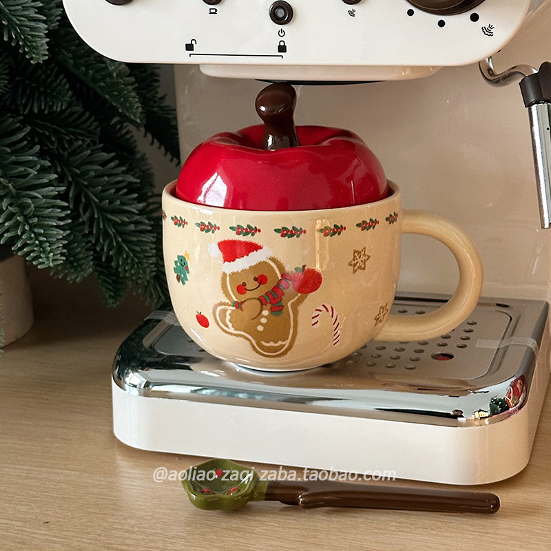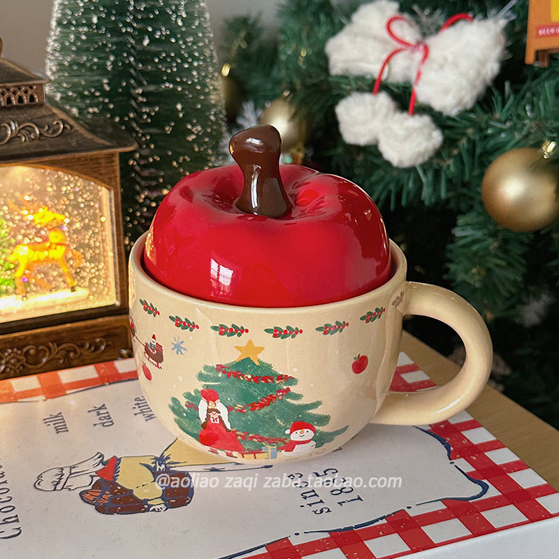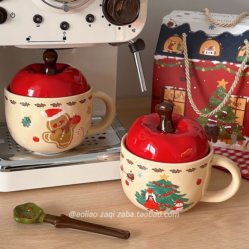 复古可爱红苹果马克杯带盖女生闺蜜陶瓷杯子新年礼物伴手礼情侣杯