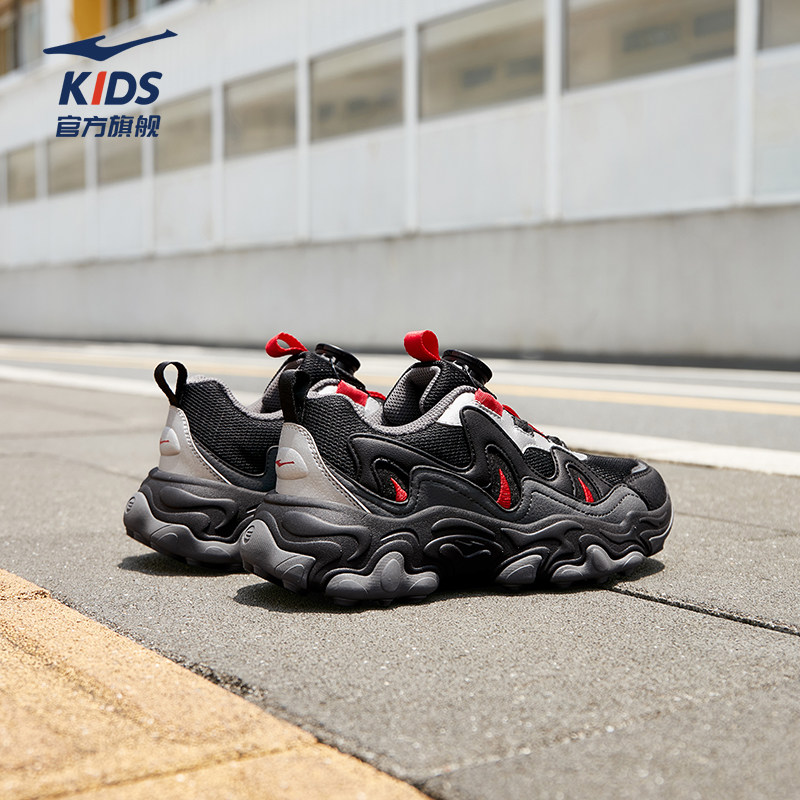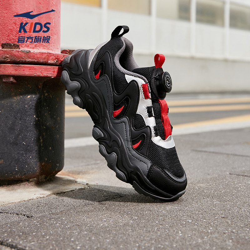鸿星尔克童鞋男童运动鞋秋季新款黑色休闲软底跑步鞋轻便老爹鞋子