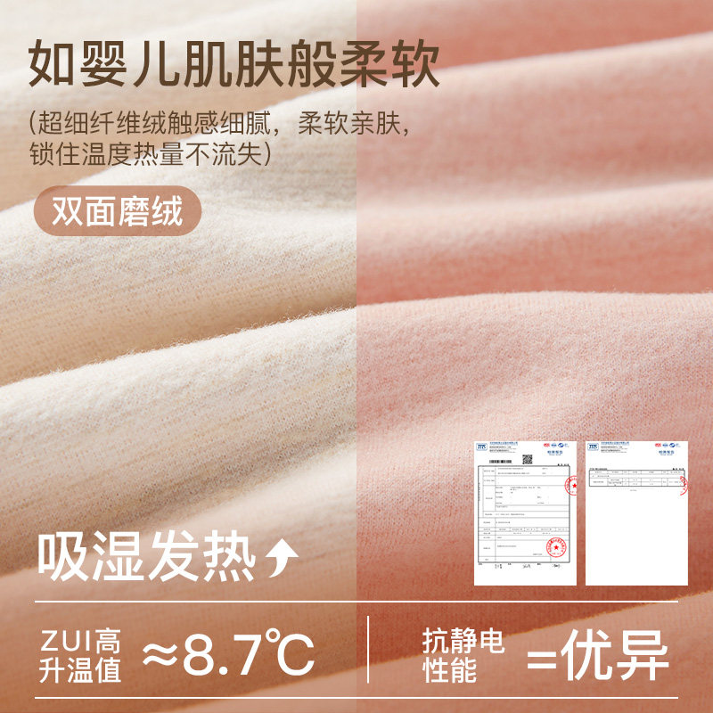 猫人德绒保暖打底衫女上衣羊绒蚕丝秋衣秋裤套装无痕发热内衣冬季