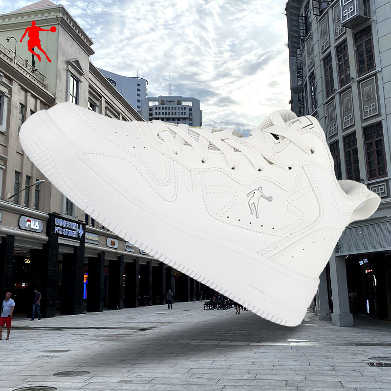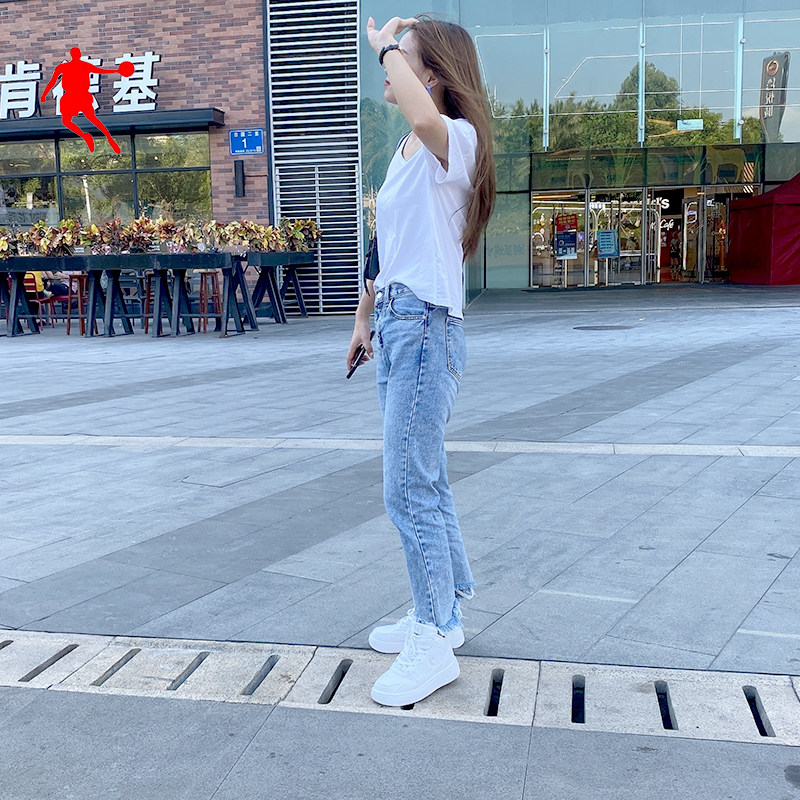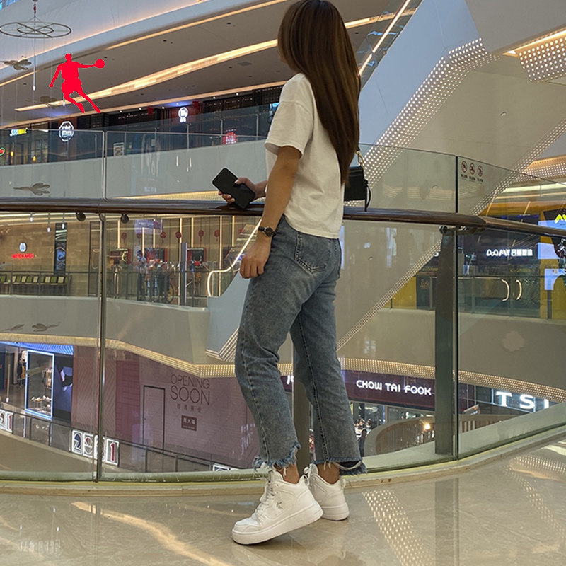 乔丹女鞋纯白色高帮运动鞋皮面防水空军一号平底板鞋休闲小白鞋子