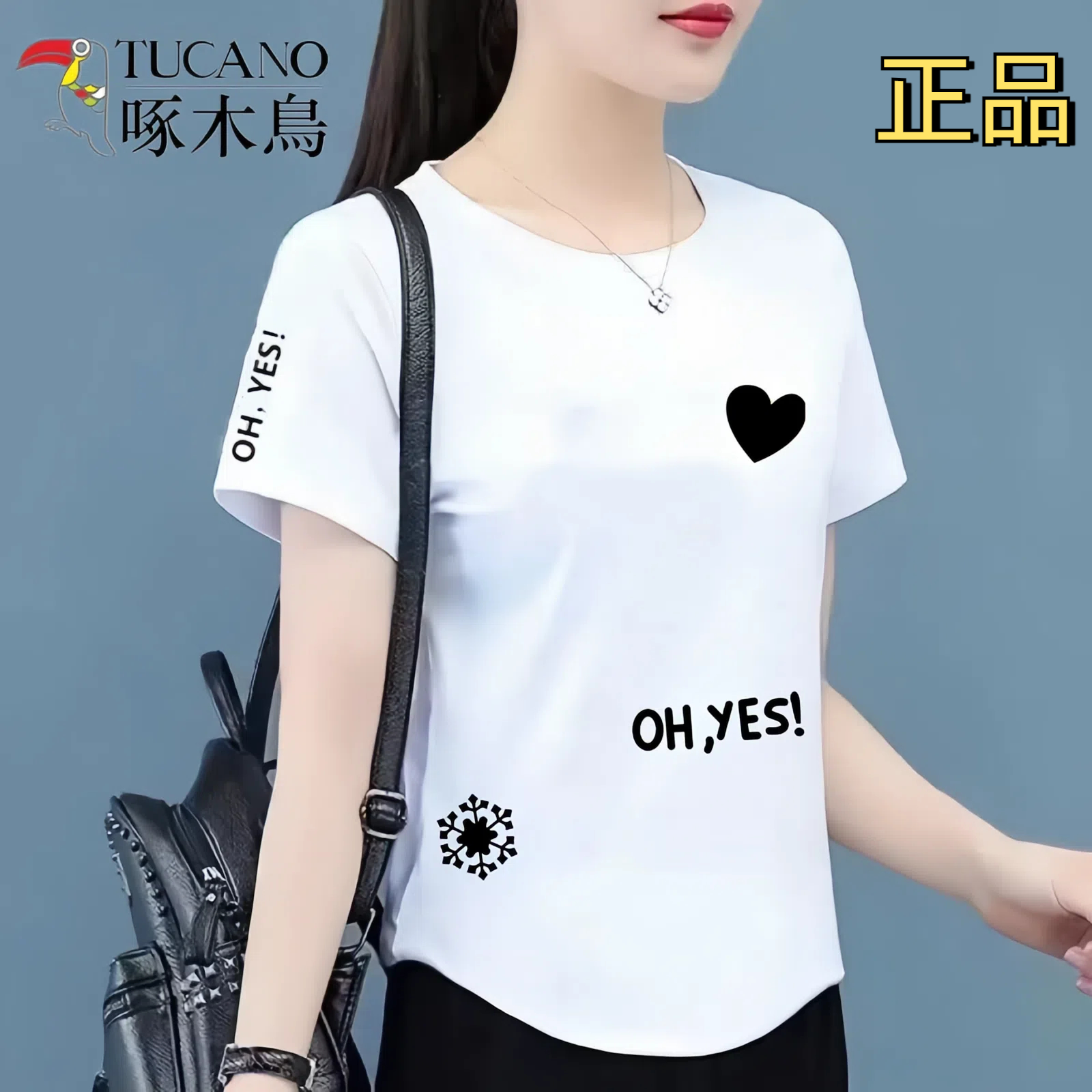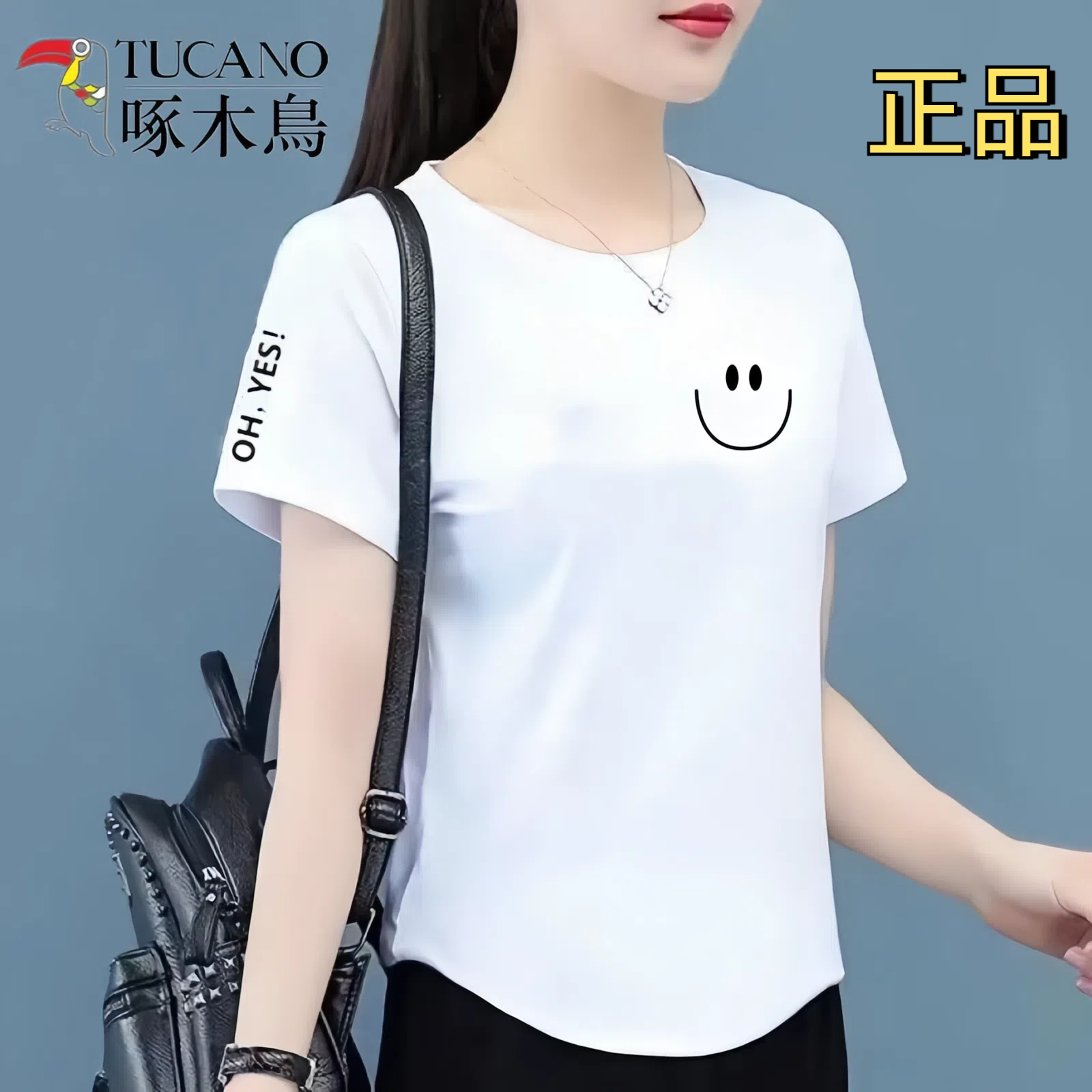 啄木鸟纯棉薄款2025夏季新款宽松显瘦时尚小众百搭女士短袖T恤衫