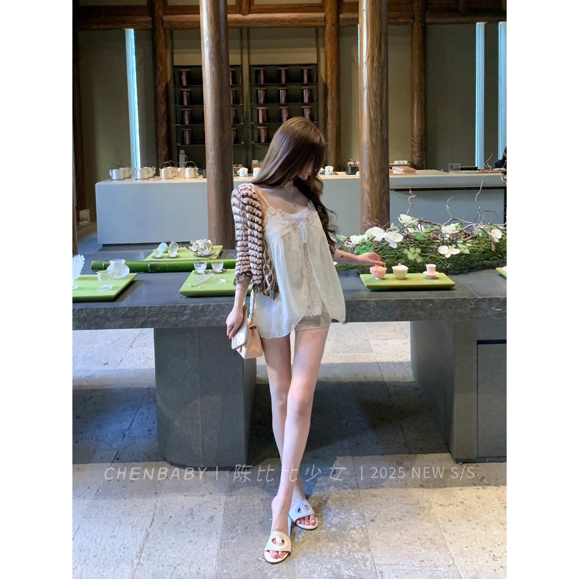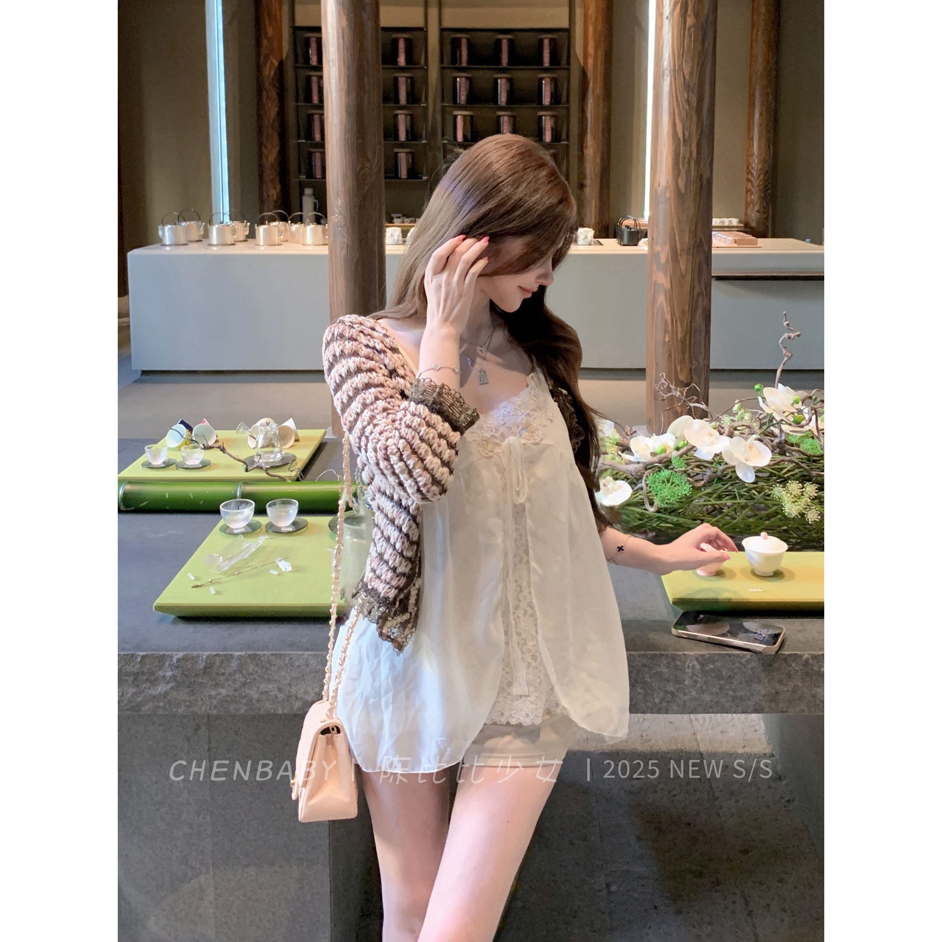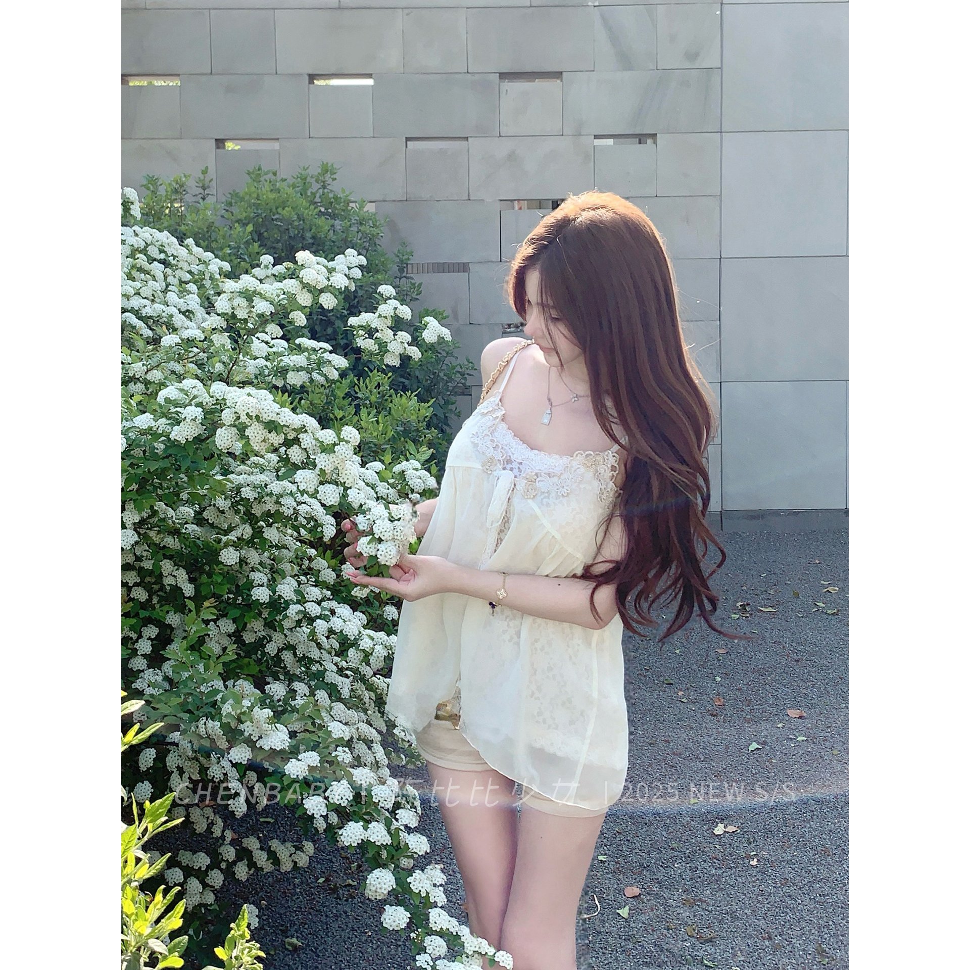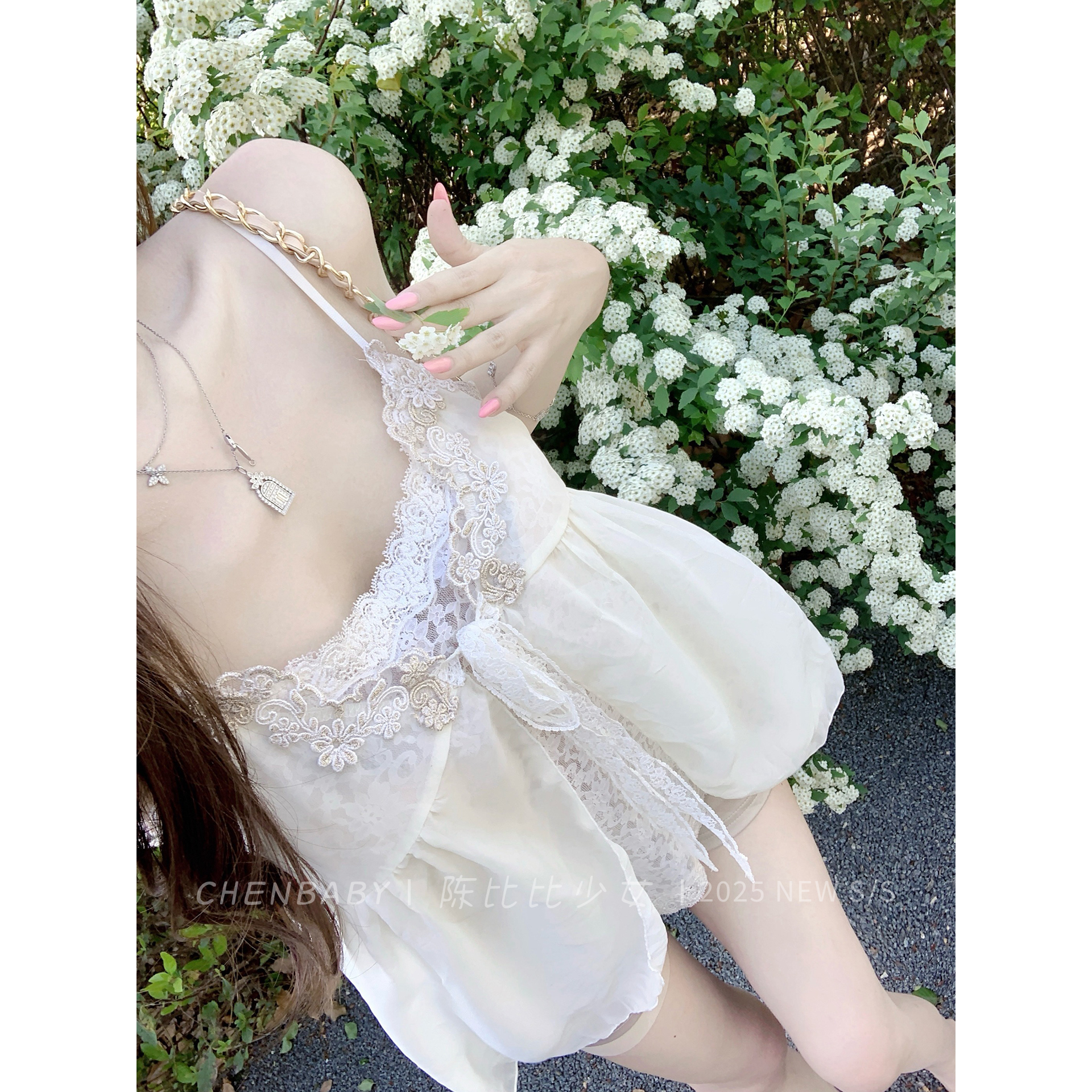 法式复古刺绣网纱吊带衫女夏季新甜美风娃娃衫设计感小众蕾丝上衣