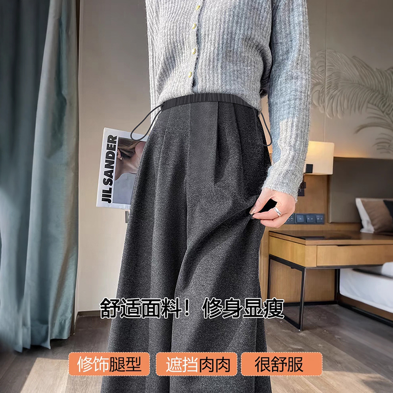 孕妇秋冬季毛呢阔腿裤宽松垂感显瘦八分九分休闲裙裤宽松舒适孕妇