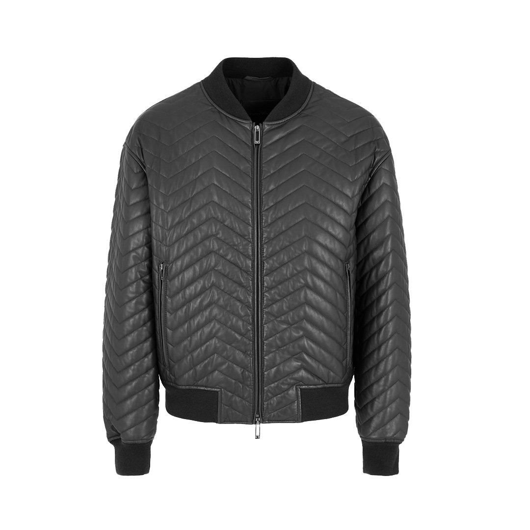 Armani/阿玛尼EA 男士鹰标真皮夹克外套皮衣 EM000116 AF10446