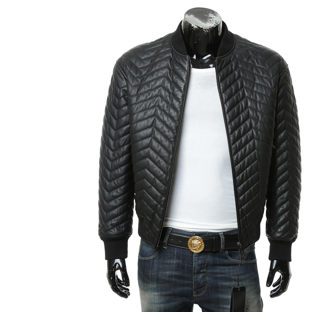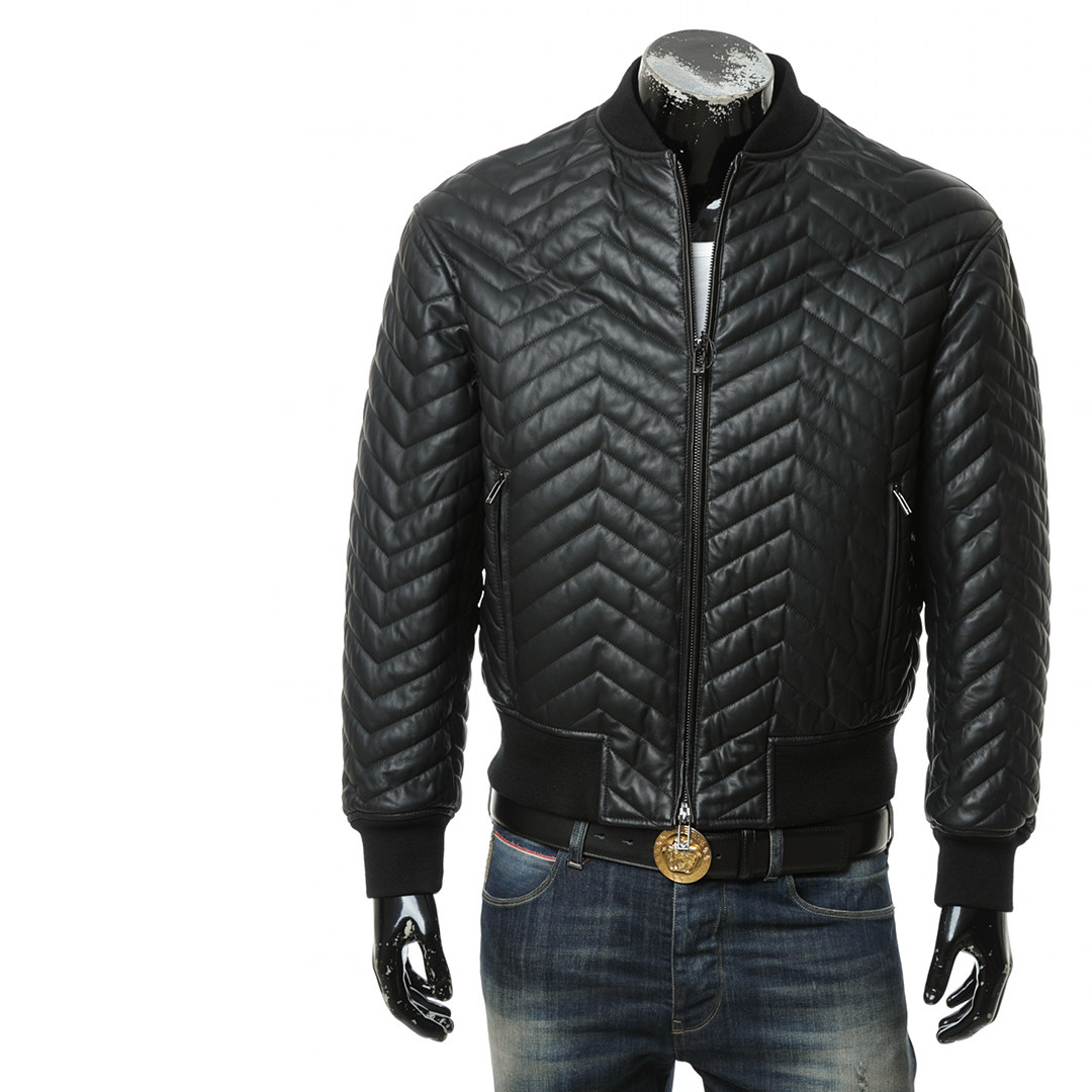 阿玛尼男士鹰标真皮皮衣