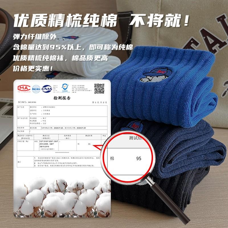 袜子男纯棉防臭中筒男孩刺绣长袜