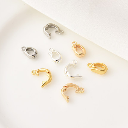 14K包金高保D字万能扣手工diy珍珠手链项链吊坠白金色银色连接扣