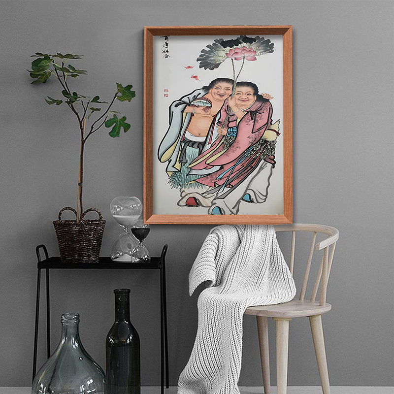 和合二圣“画像挂画夫妻和睦摆件
