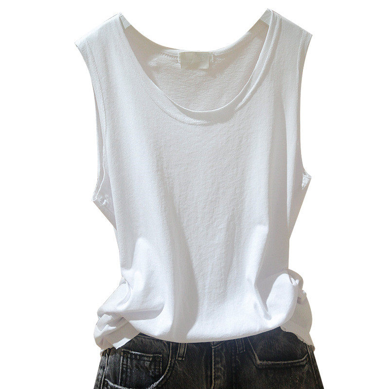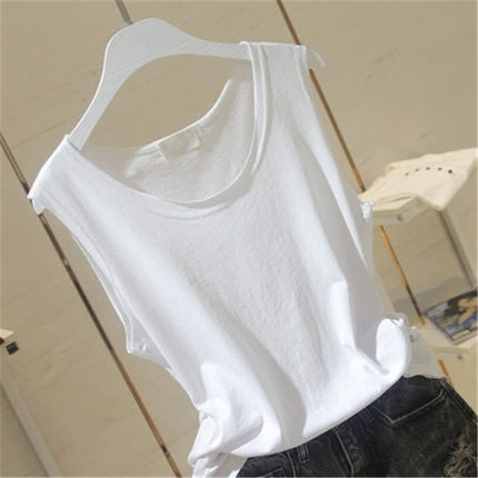 白色无袖t恤女2021夏季新款韩版ins潮宽松显瘦圆领背心体恤上衣服