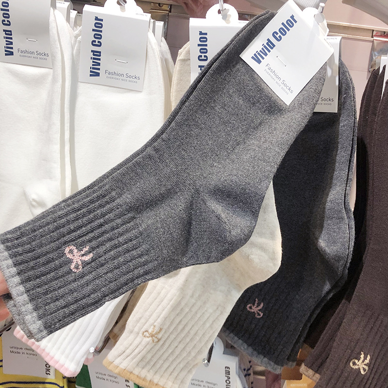 韩国东大门vivid新款miu系蝴蝶结中筒少女袜日系拼色口棉袜5185