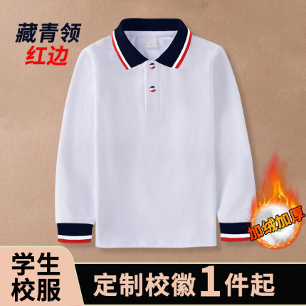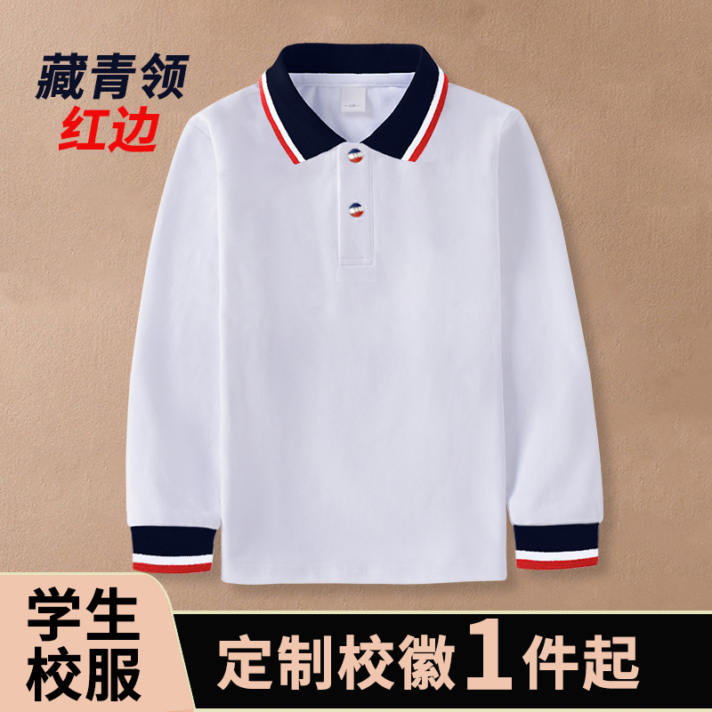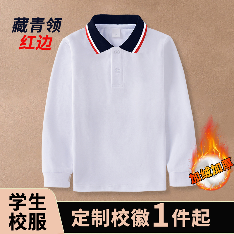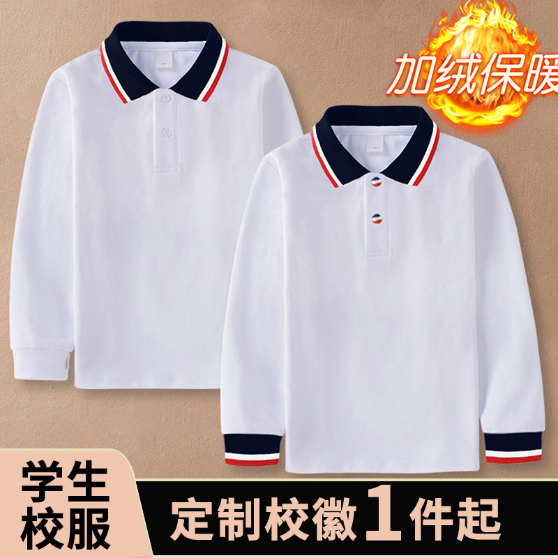03儿童白色polo衫男女秋冬季t恤长袖打底衫中小学生校服班服加绒