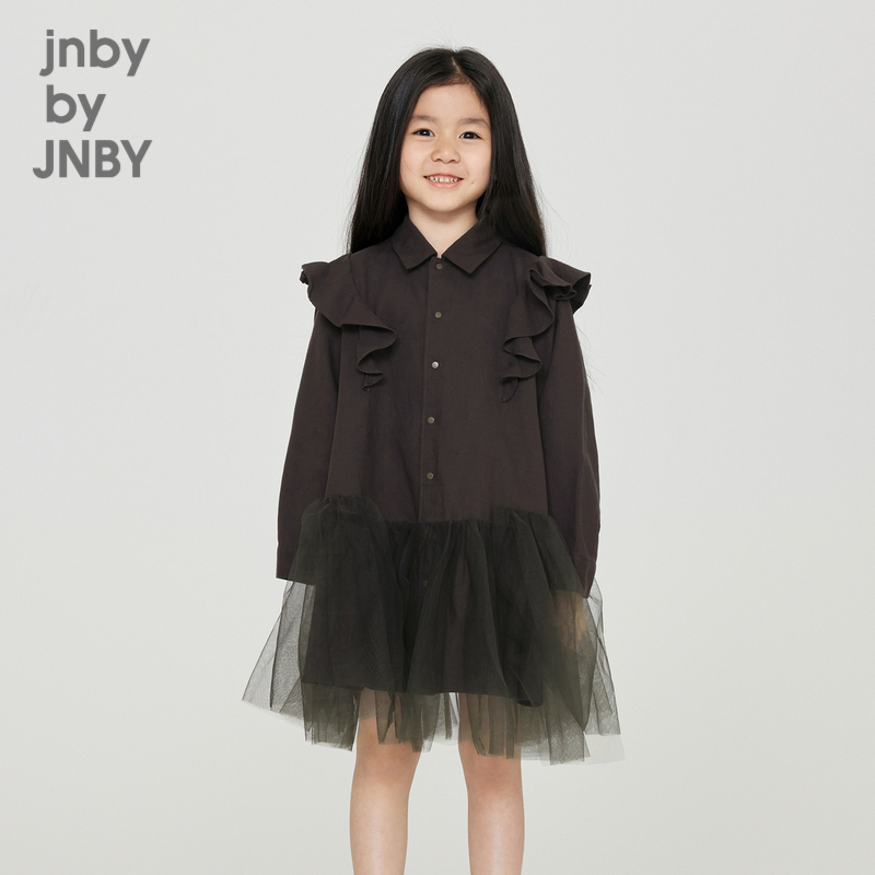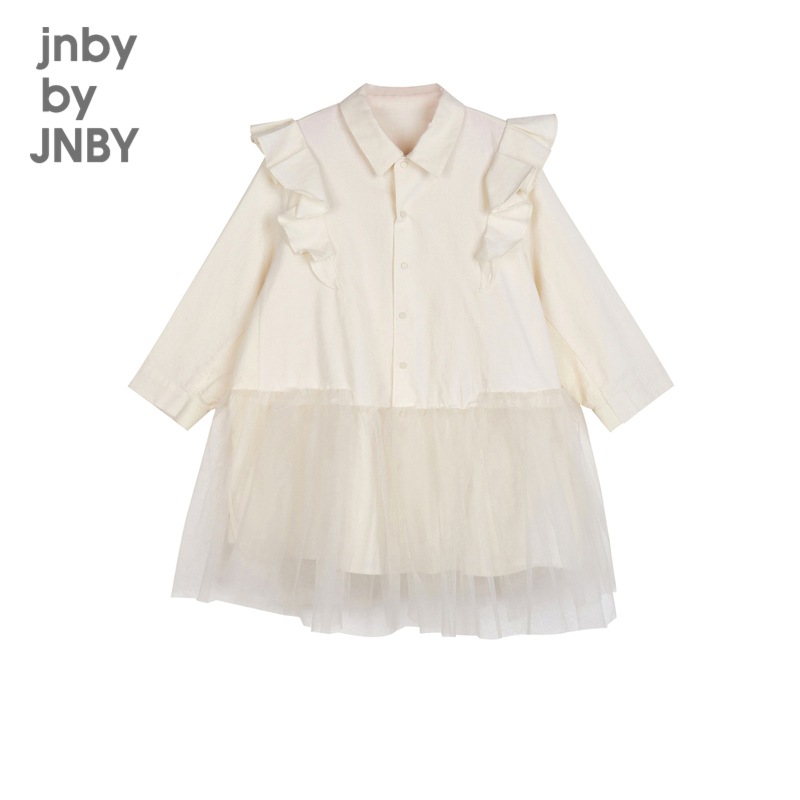 江南布衣童装长袖连衣裙网纱拼接花边造型秋女童儿童jnbybyjnby