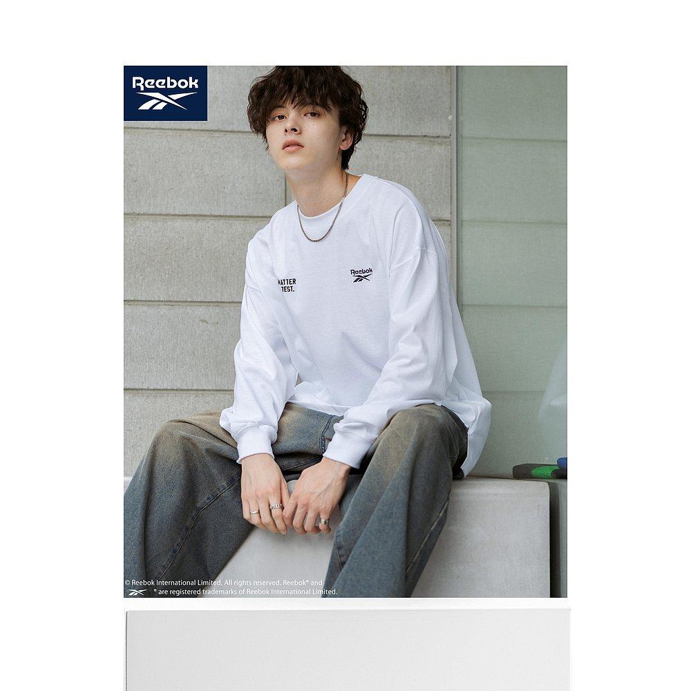 1h可退 日本直邮Reebok 男女同款 宽松长袖T恤 双胸刺绣拉格兰袖