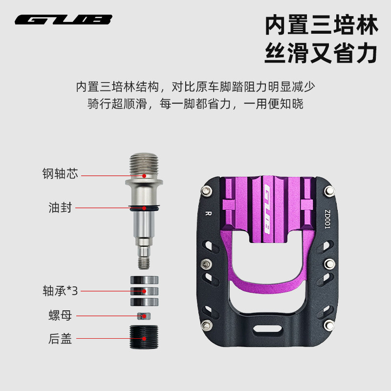 GUB ZD001三培林折叠脚踏山地车铝合金自行车脚踏板防滑骑行