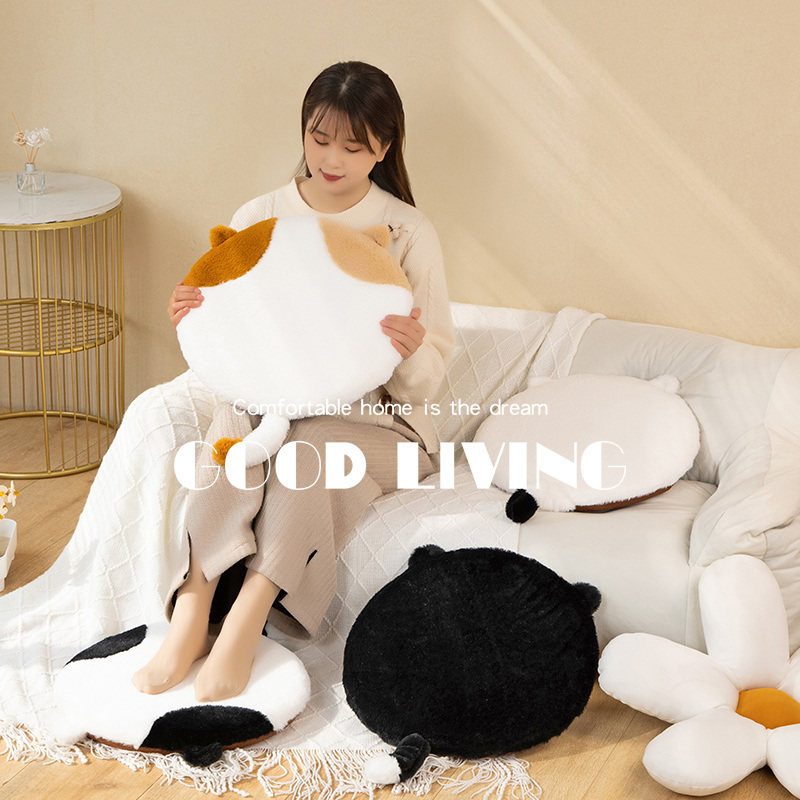 日系可爱无脸猫咪毛绒记忆棉圆坐垫学生宿舍办公室榻榻米飘窗椅垫