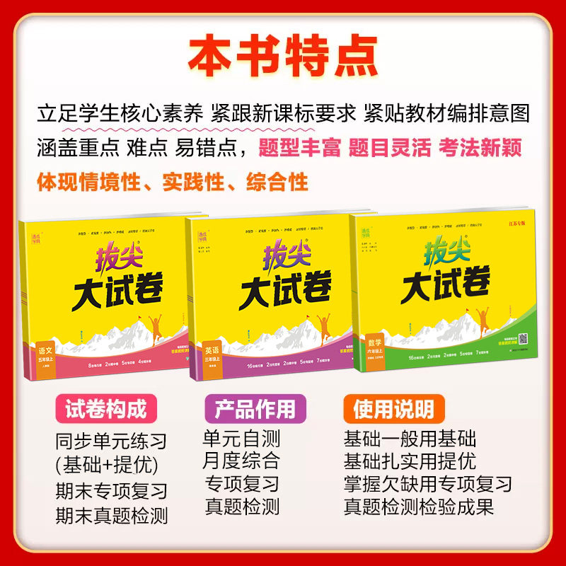 通成学典2026拔尖大试卷英语语文数学一二三年级上册人教版沪教牛津小学四五六年级下册提优英语试卷期末总复习试卷子