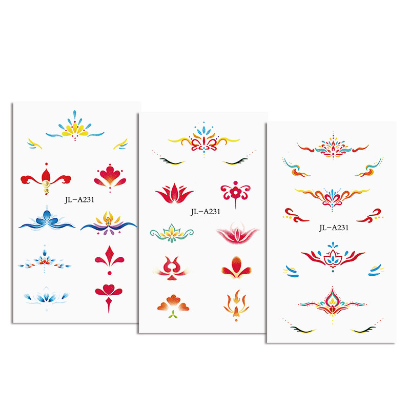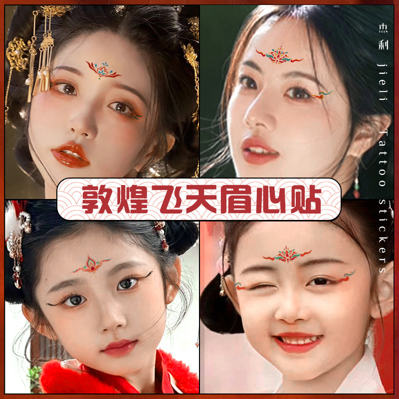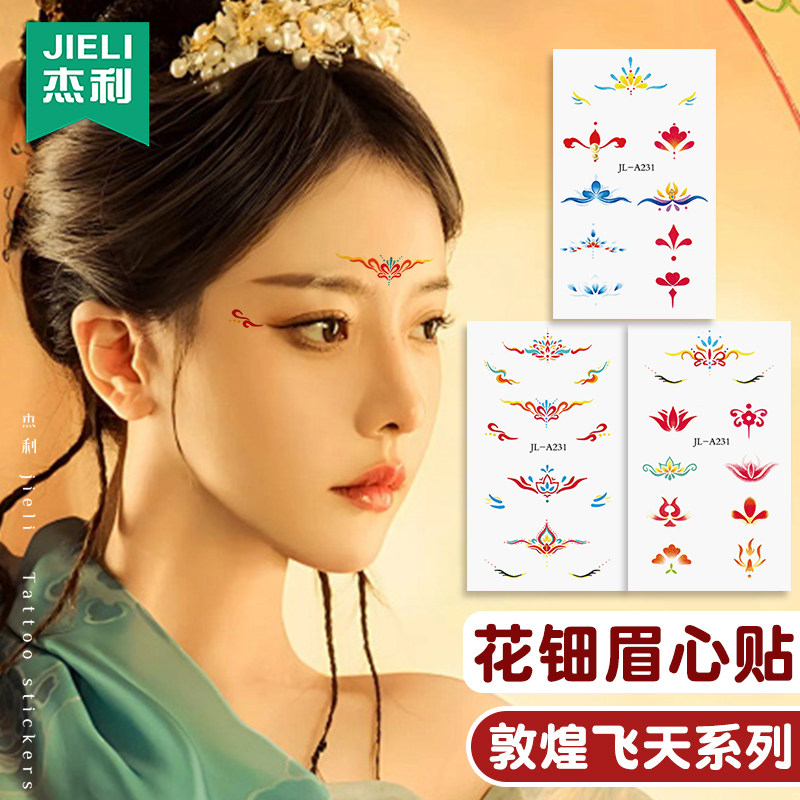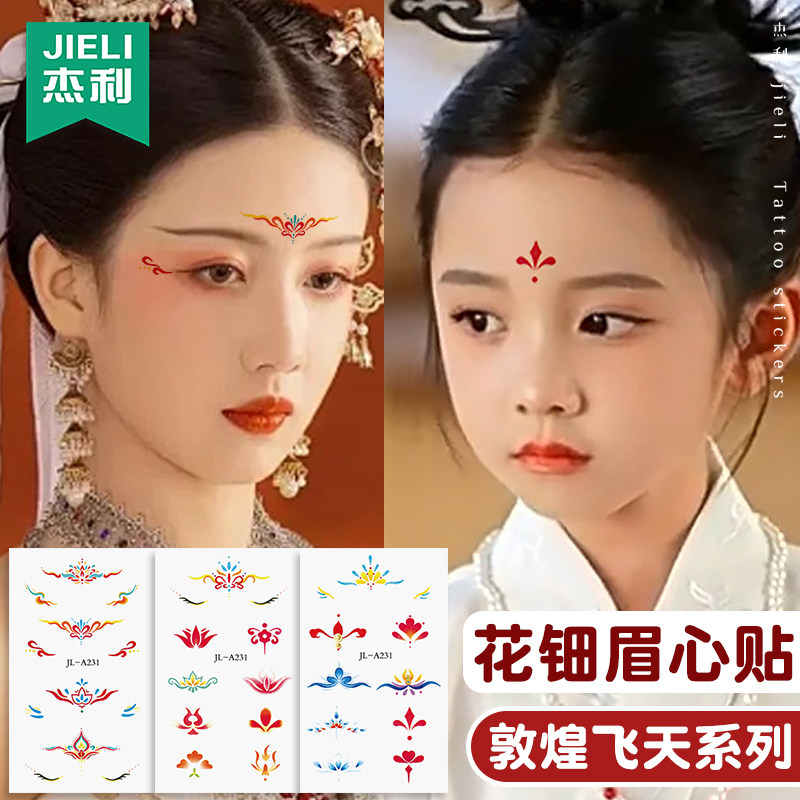 杰利儿童敦煌飞天妆容贴纸眉心贴舞台妆彩绘脸部贴纸眼角贴画元素装饰眼妆贴女童额头花钿汉服古装纹身贴定制