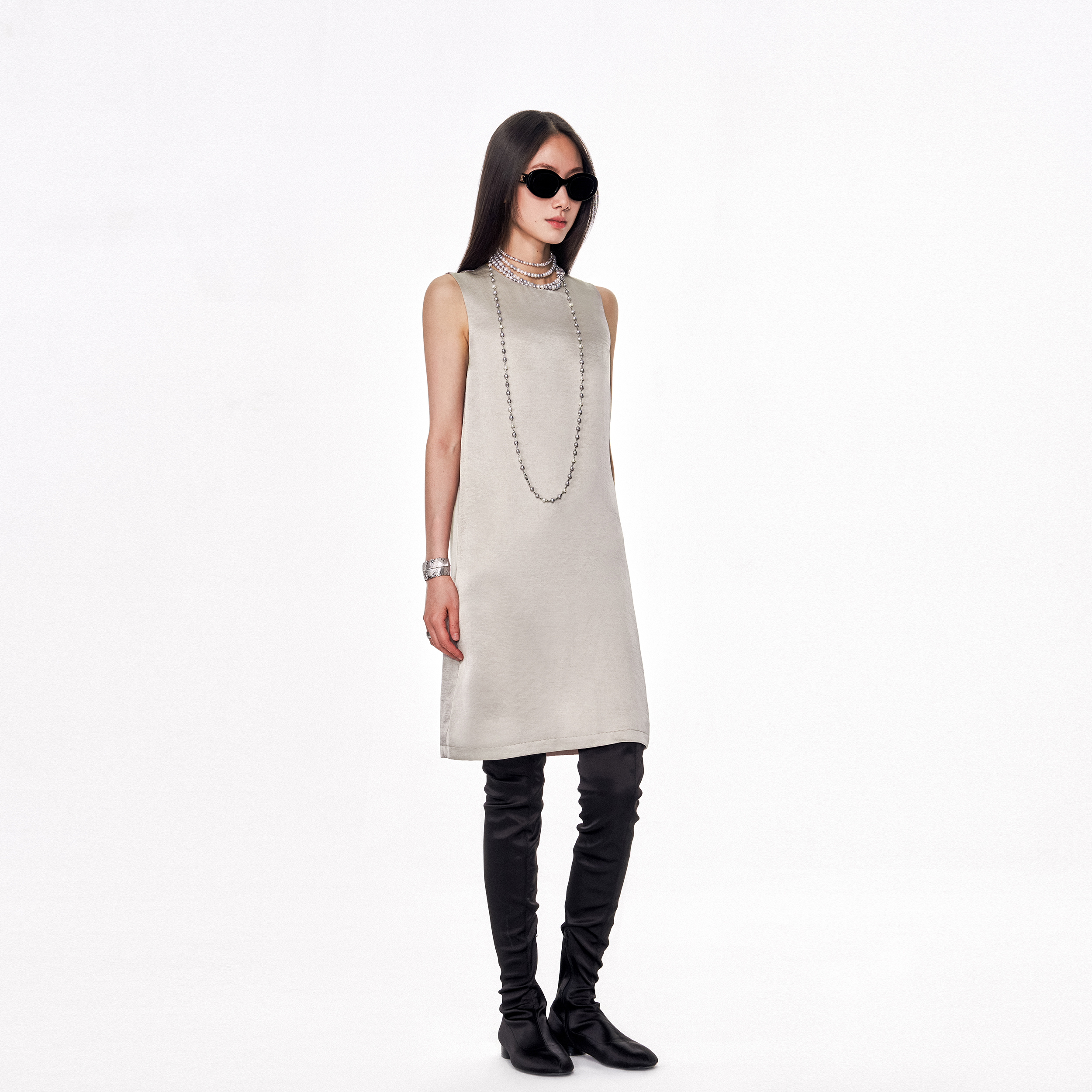 林乔芝25年新款高级感圆领宽松无袖连衣裙长裙女夏季宽松通勤气质