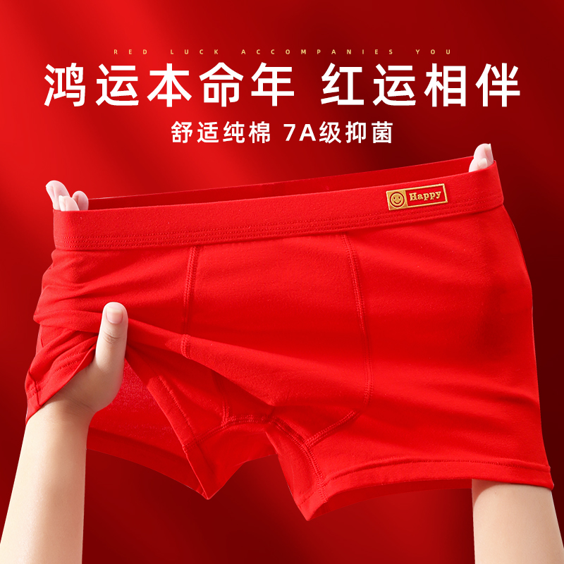 男童本命年红色内裤蛇年纯棉12岁大童全棉男孩儿童100%平角