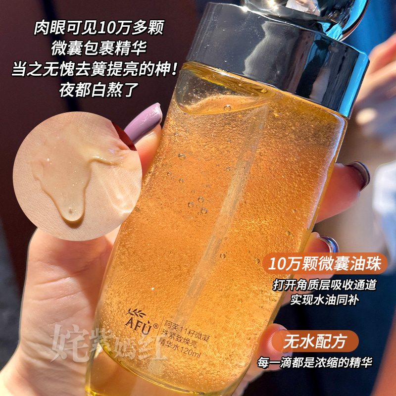 2.0升级!AFU阿芙11籽微凝珠水乳套装精华油敷抛光保湿抗皱紧致