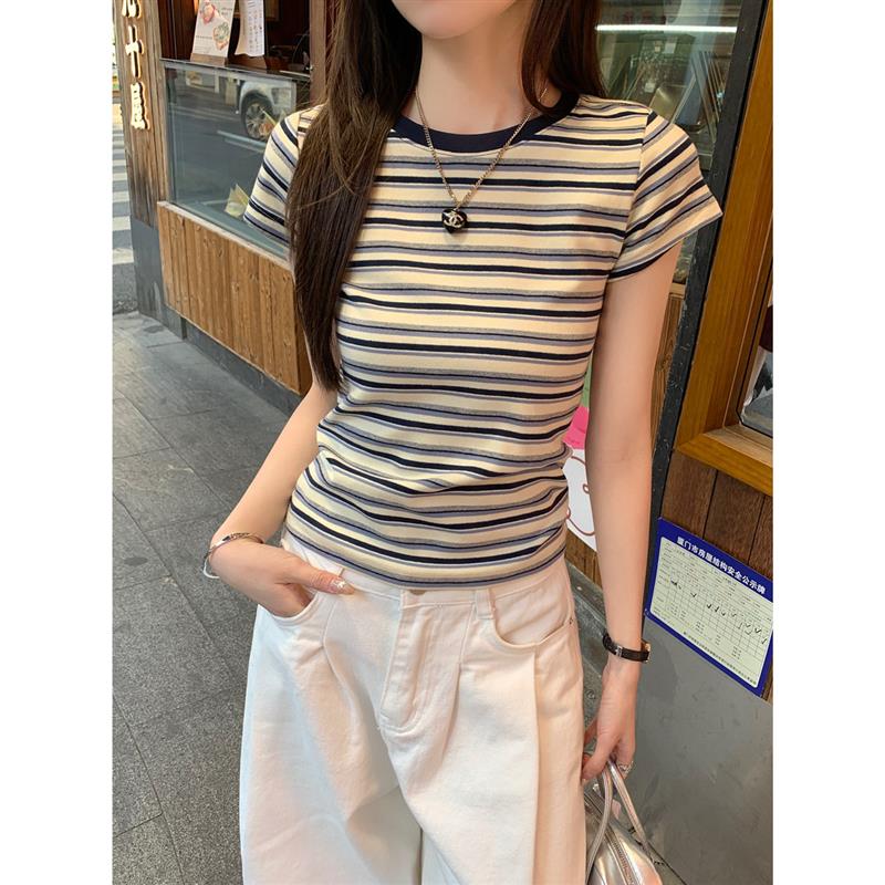 2025夏季新款韩系显瘦条纹百搭小个子纯棉短袖T恤上衣女装学生ins