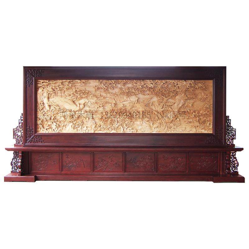 东阳木雕中式实木双面雕花屏风客厅办公室移动隔断座屏落地插屏