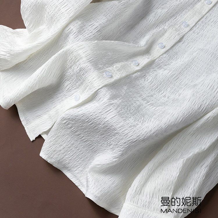 清冷艺术范儿肌理感真丝白衬衫!圆领长袖通勤直筒上衣提花桑蚕丝