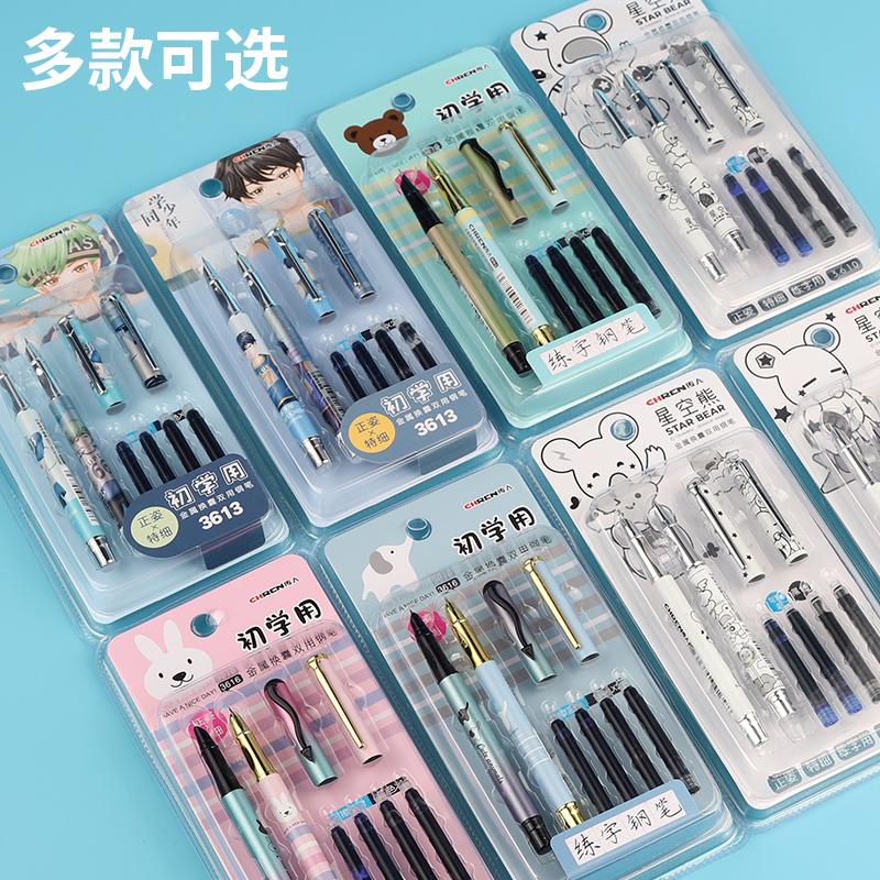 【2支装】传人3613金属正姿吸卡钢笔学生专用小学生三年级练字钢笔初学用2.6mm卡装钢笔女孩可擦特细刚笔正品