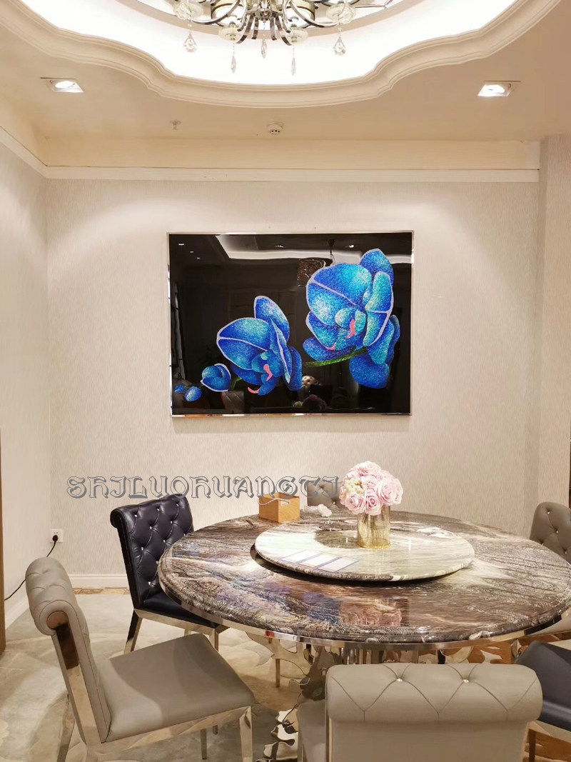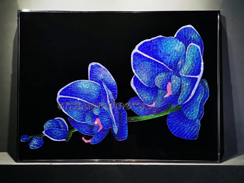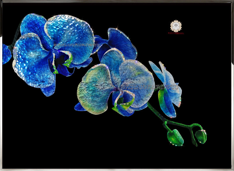 蓝色暗香施华洛世奇水晶装饰画贝壳镶嵌手工拼接原创珐琅彩装饰画