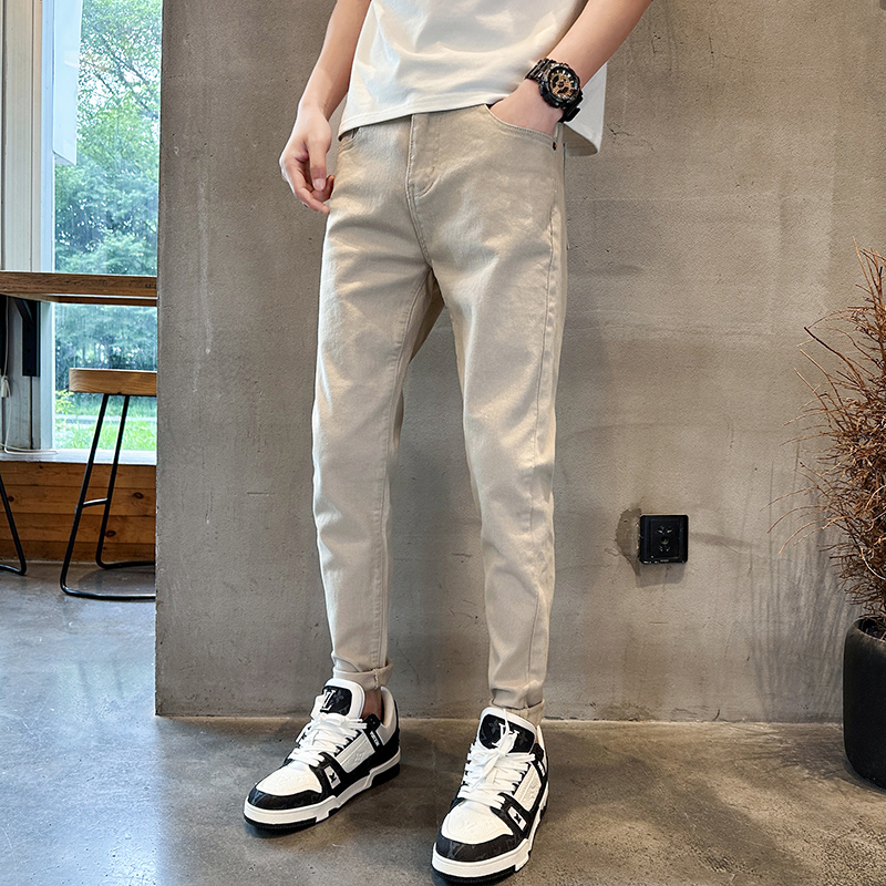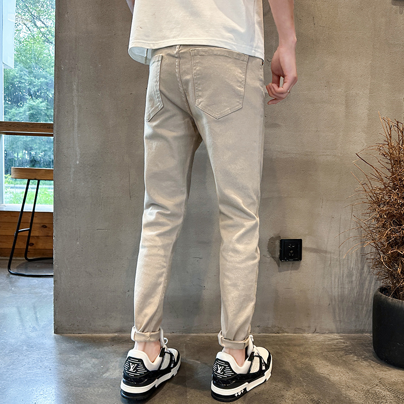 春夏季小码修身小脚牛仔裤男矮个子XS码2627弹力纯色休闲长裤160