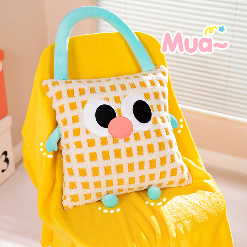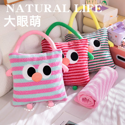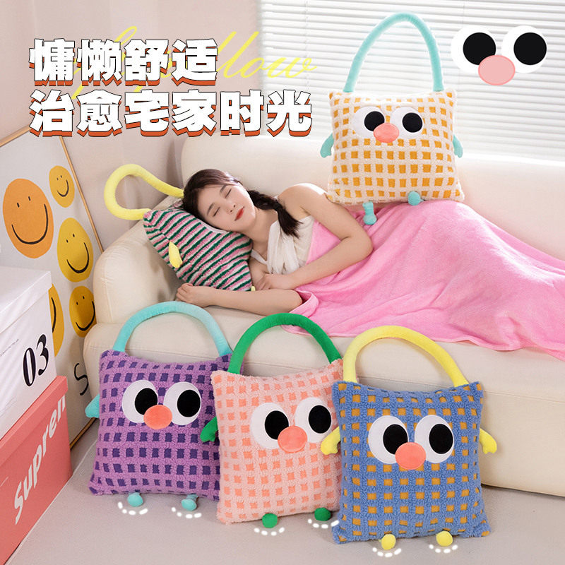 多巴胺少女心大眼怪手拎抱枕被子汽车沙发盖毯二合一办公室午睡枕